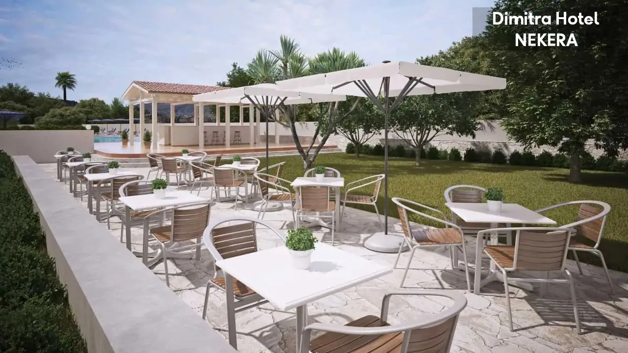kameralny dwugwiazdkowy zadbany i częściowo odnowiony hotel z ogrodem, oferuje pokoje w budynkun głównym (2 piętra). Do dyspozycji Gości: recpecja 24h, klimatyzacja, lobby, basen zewnętrzny, brodzik, leżaki i parasole słoneczne przy basenie: w cenie, taras słoneczny, ogród, główna restauracja Dimitra, bary (w lobby, przy basenie z tarasem), sala telewizyjna, przechowalnia bagażu. Dodatkowo płatne: usługa prania/prasowania, usługa pocztowa, wypożyczalnia samochodów, skuterów i rowerów.
