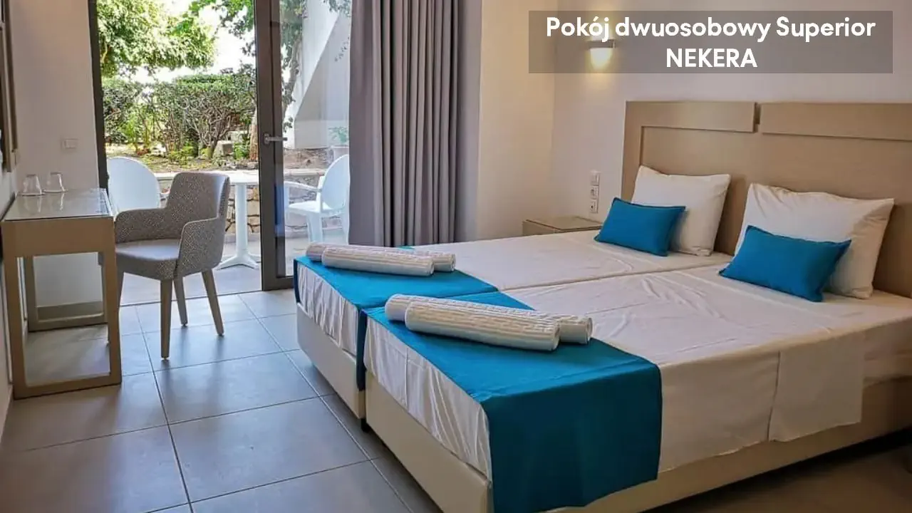 Noclegi, wyżywienie zgodnie z rezerwacją. Dodatkowo w przypadku imprez pakietowych z przelotem, oprócz ww. świadczeń w cenie zawarty jest: ubezpieczenie podstawowe (8000 EUR KL i 2000 EUR NNW) przelot, opłata lotniskowa, opłata za wylot z lotniska lokalnego, transfer lotnisko-hotel-lotnisko (chyba, że dana oferta stanowi inaczej jak np. zakup hotelu z dojazdem własnym). W sezonie letnim tj. w okresie od 22.05 do 09.10 br. oferujemy bezpośrednią opiekę polskojęzycznego rezydenta na miejscu. W pozostałym okresie zapewniamy opiekę lokalnego przedstawiciela, a także kontakt telefoniczny lub poprzez czat (na portalu moja.nekera.pl) z polskojęzycznym rezydentem. Podane godziny serwowania posiłków oraz funkcjonowanie poszczególnych elementów infrastruktury hotelowej mogą ulec nieznacznym zmianom, ze względu na sezonowość, siły wyższe i inne okoliczności.