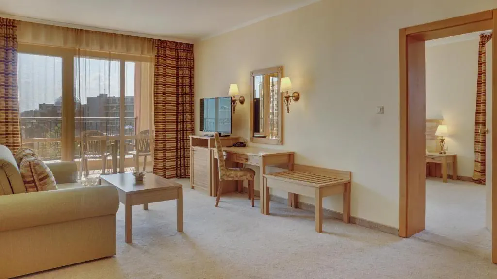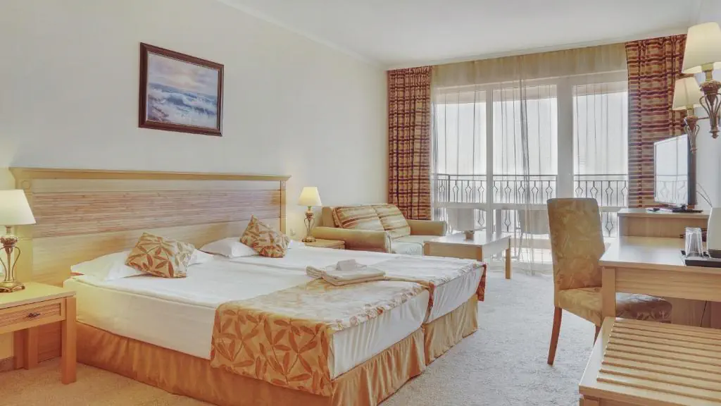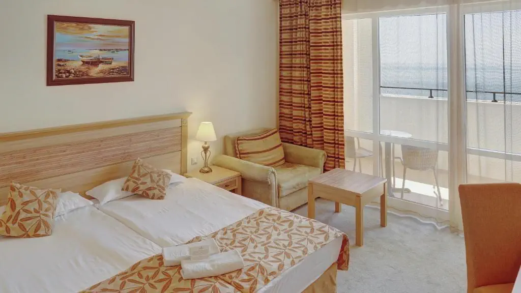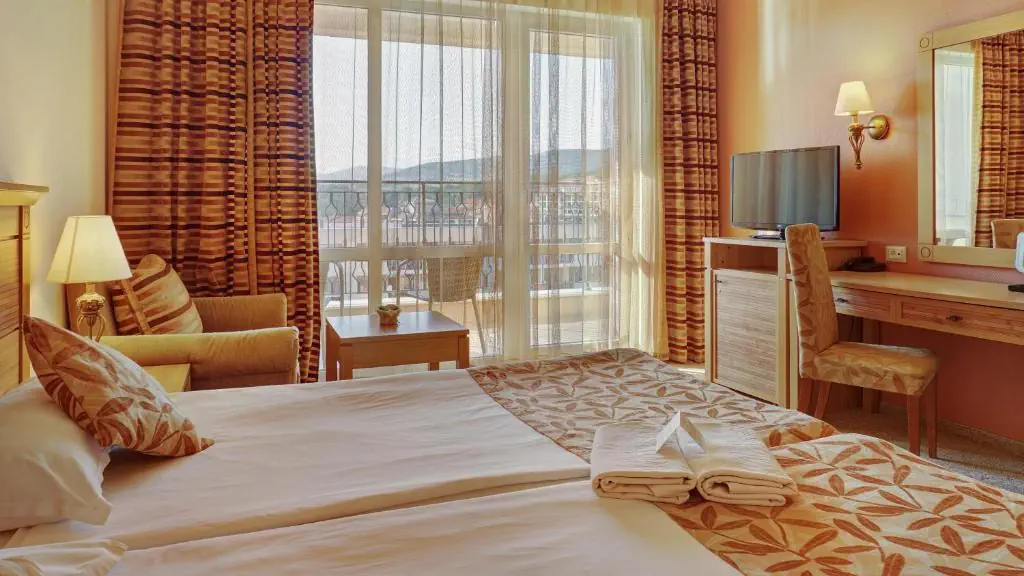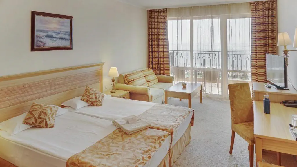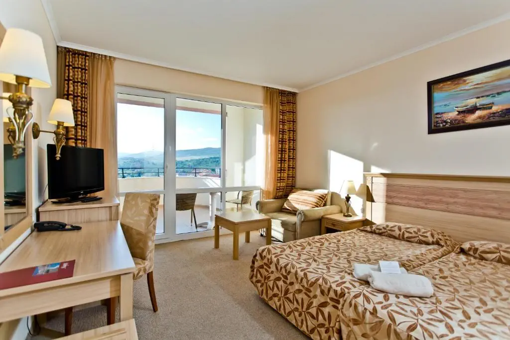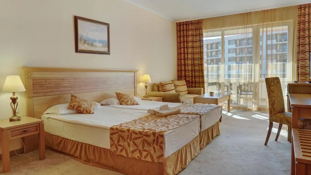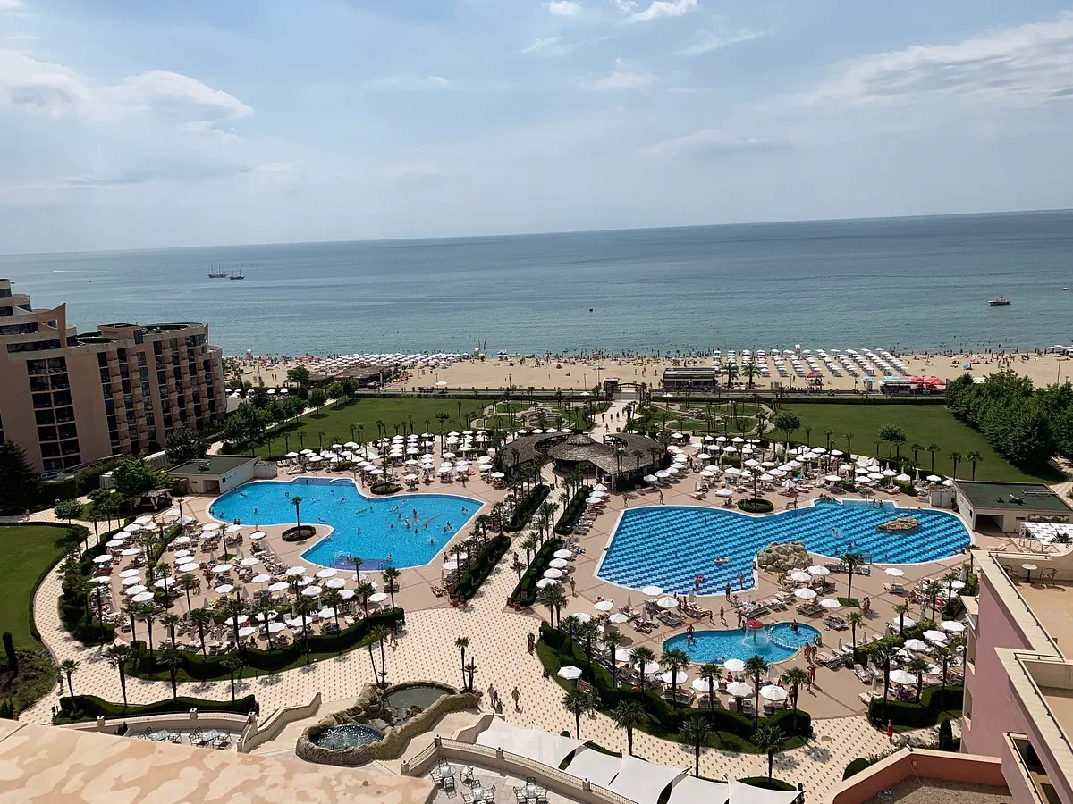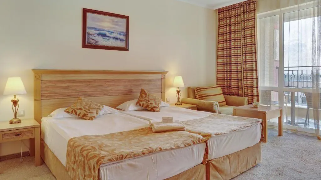 Czterogwiazdkowy hotel położony przy piaszczystej plaży w znanym kurorcie Słoneczny Brzeg z wieloma restauracjami i barami dookoła. Polecany na przyjazd rodzinom z dziećmi