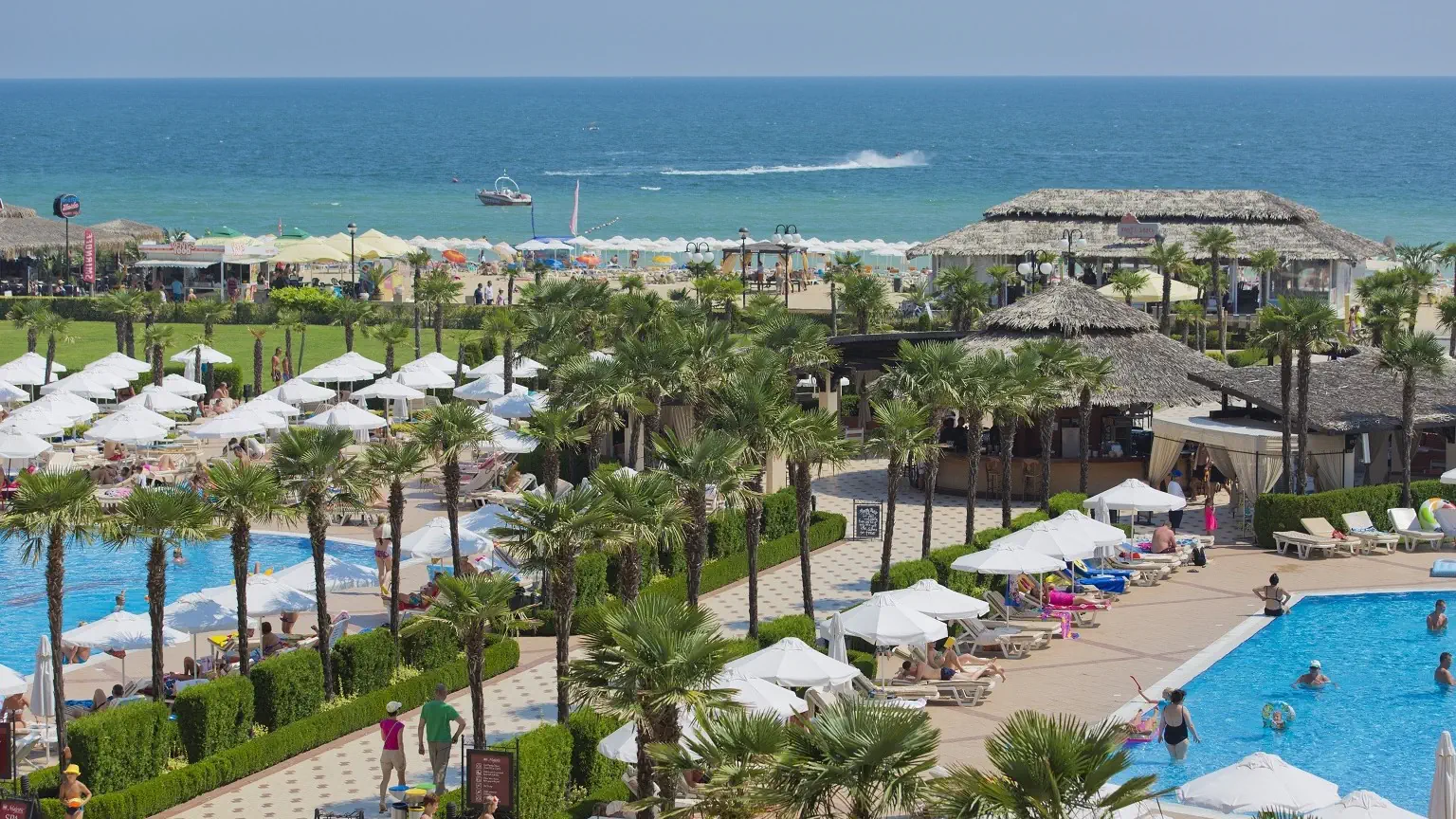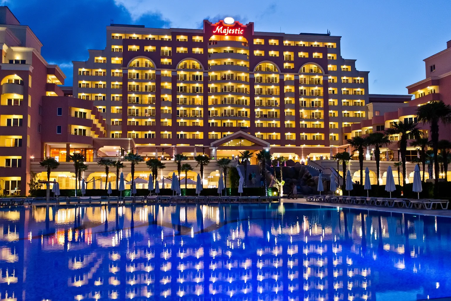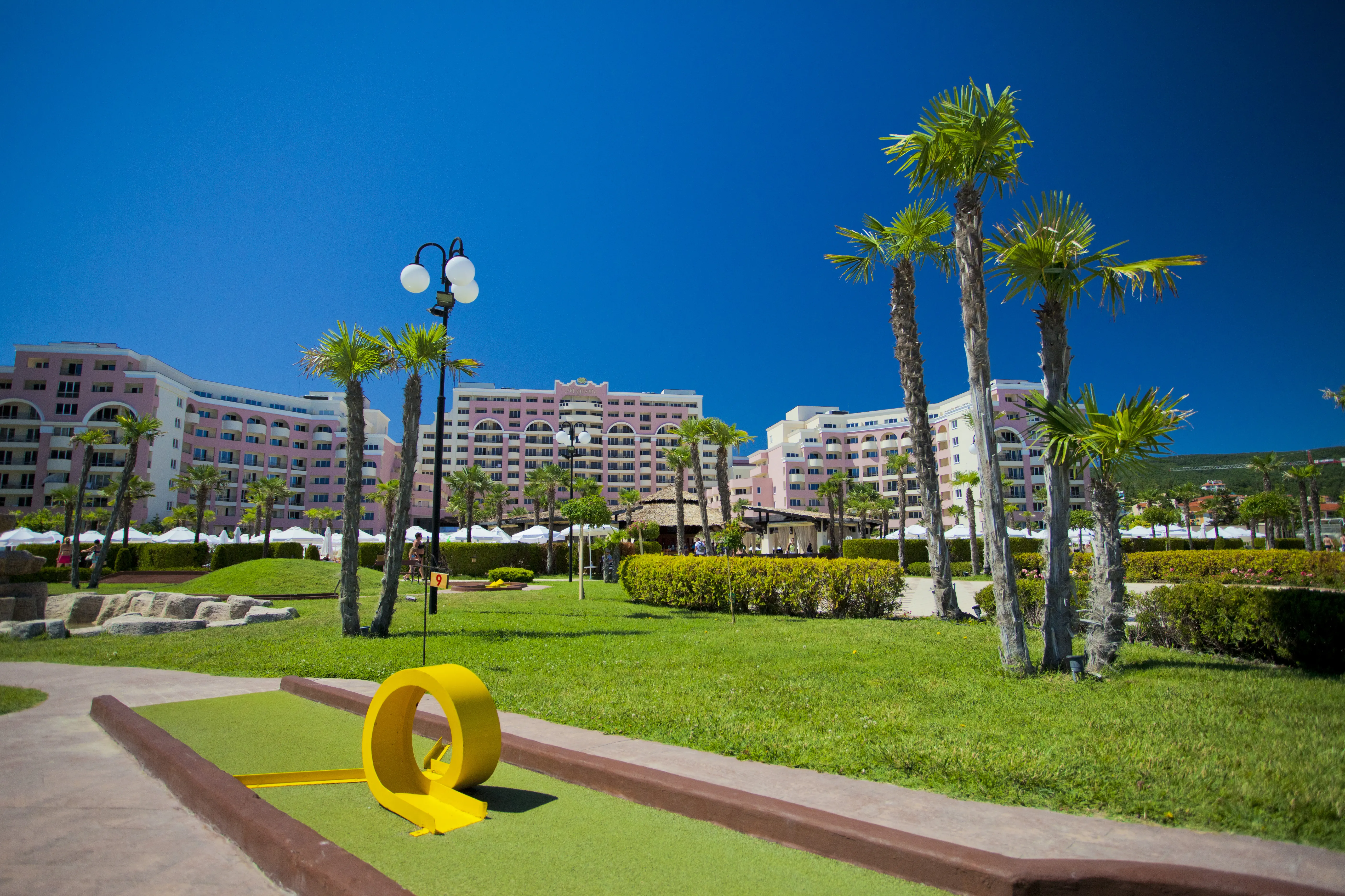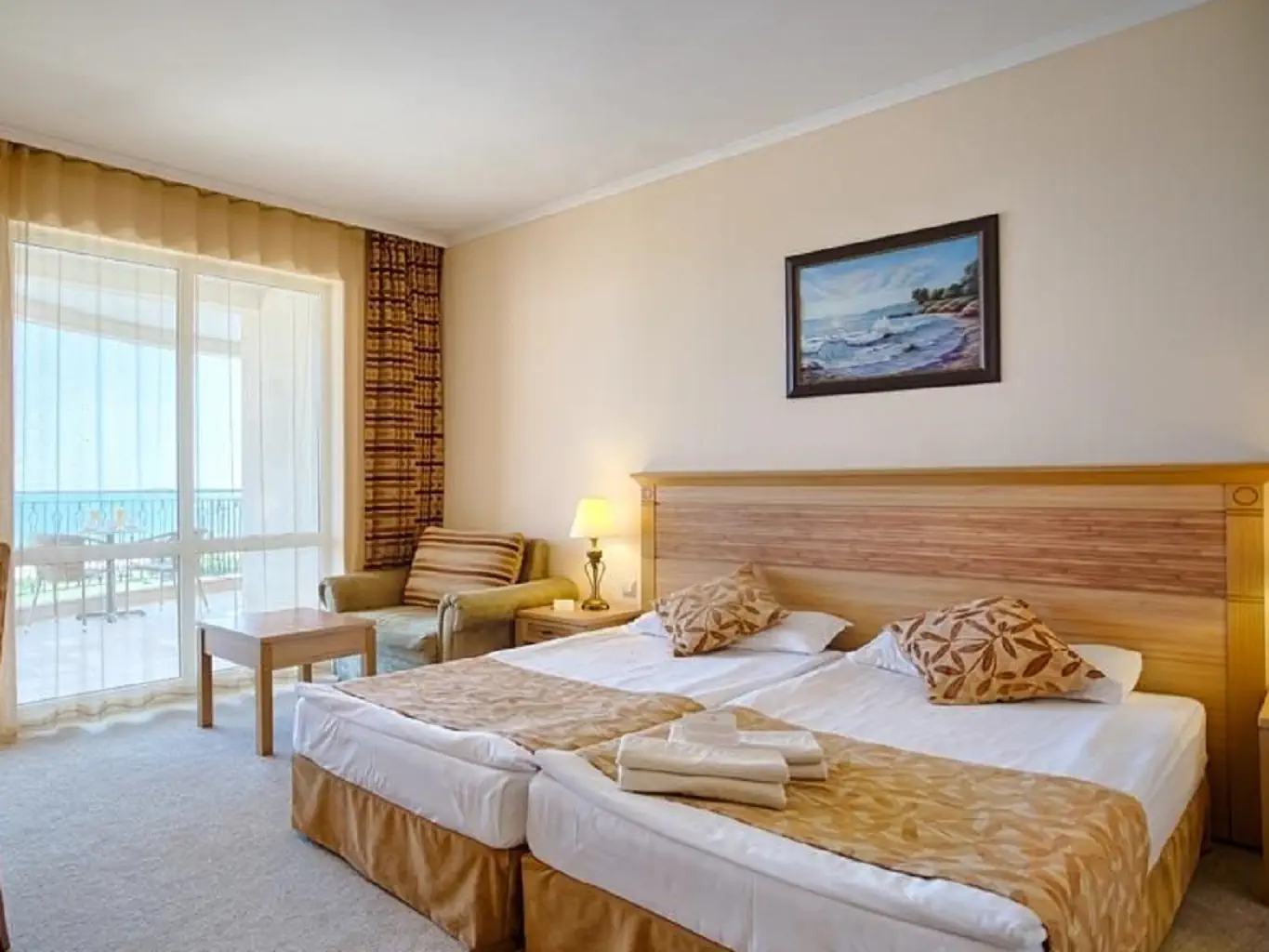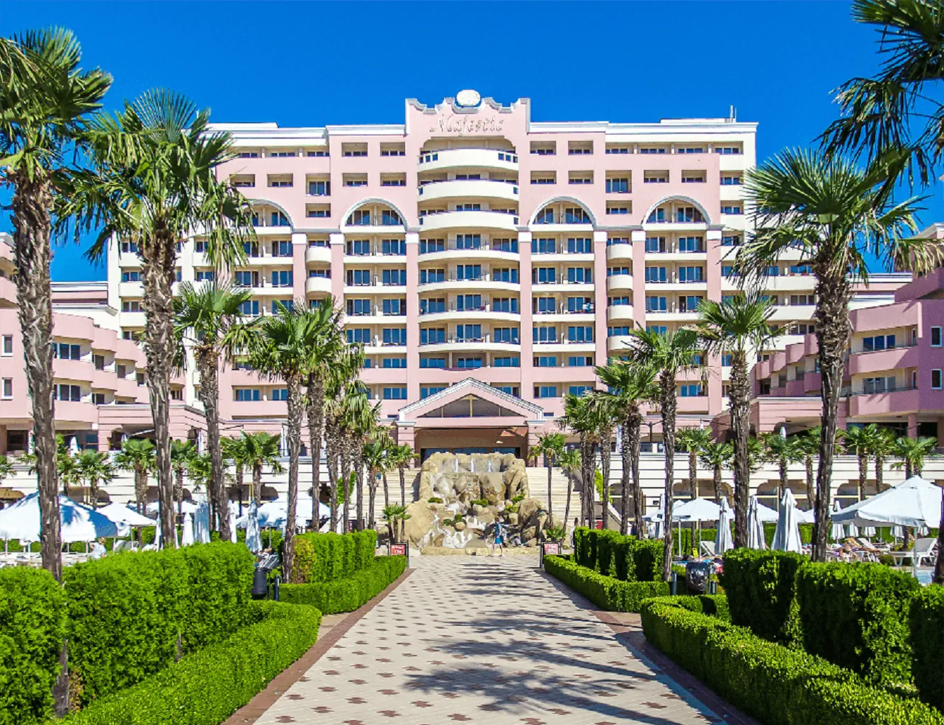 Czterogwiazdkowy hotel położony przy piaszczystej plaży w znanym kurorcie Słoneczny Brzeg z wieloma restauracjami i barami dookoła. Polecany na przyjazd rodzinom z dziećmi