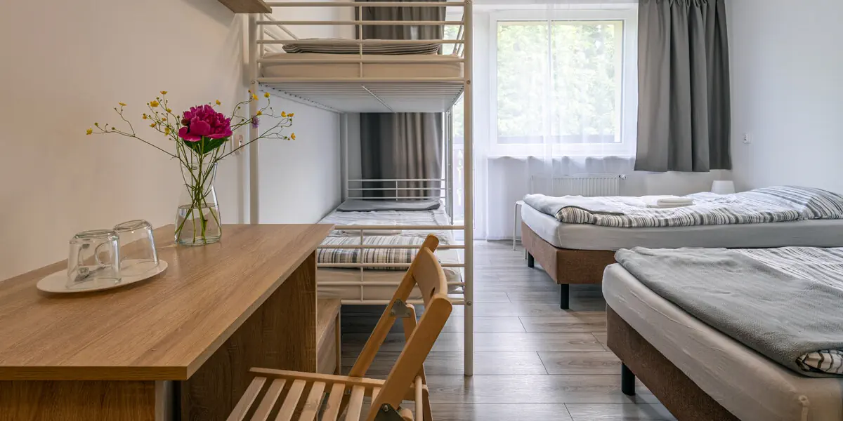 Przytulny pokój na pobyt dla maksymalnie 3 osób dorosłych i 2 dzieci do 12 lat, wyposażony w TV, wifi, prywatną łazienkę z kabiną prysznicową.