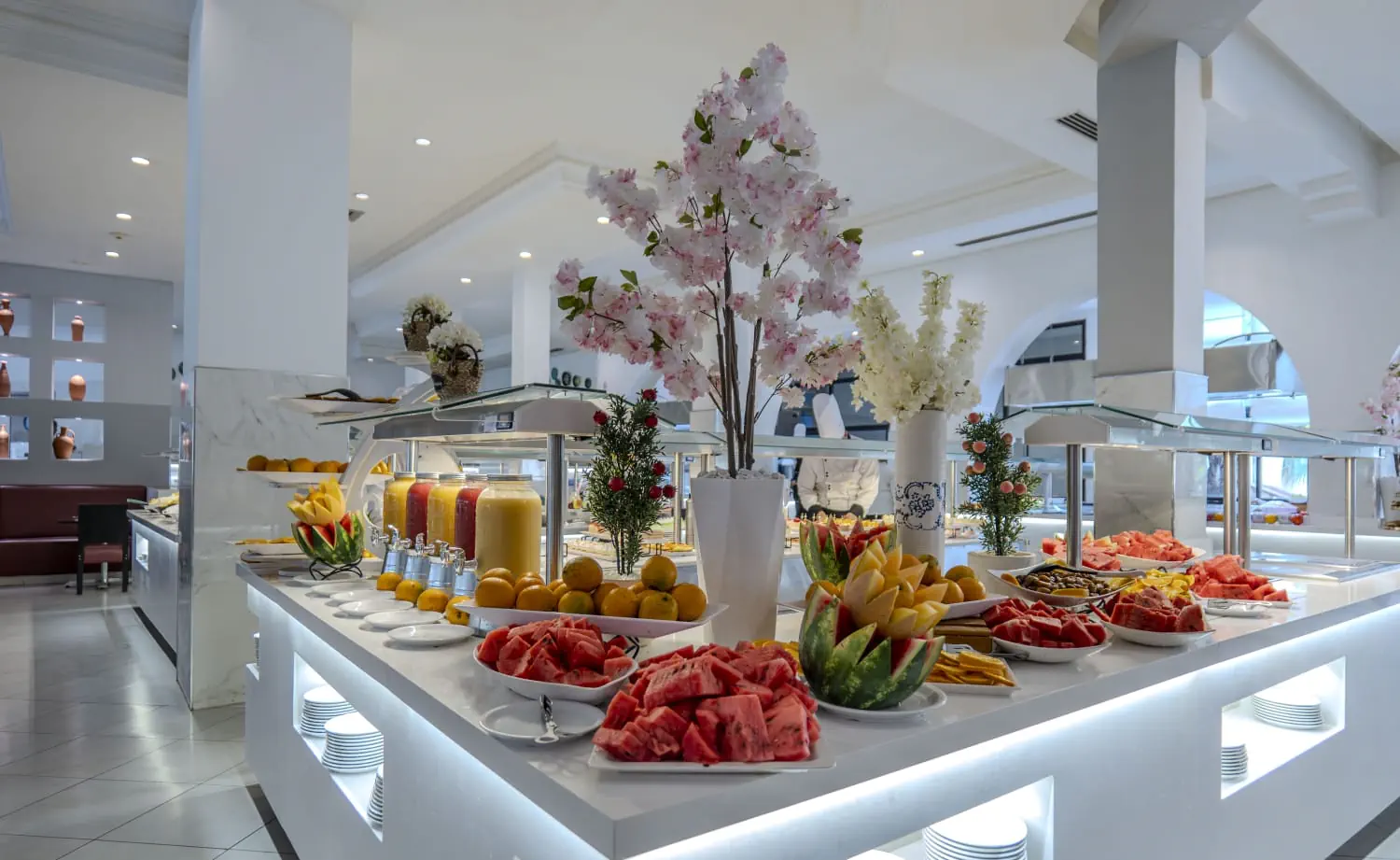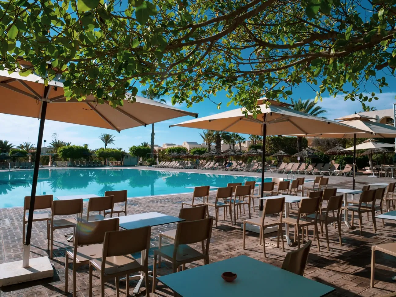 Śniadanie (06:00 - 10:00) - Dar El Hana - Main Restaurant, stół szwedzki, Obiad (12:30 - 14:00) - Dar El Hana - Main Restaurant, stół szwedzki, Przekąski (16:30 - 17:30) - Snack bar, stół szwedzki, Kolacja (19:00 - 21:00) - Dar El Hana - Main Restaurant, stół szwedzki, El Mida (19:00 - 21:00) (19:00 - 21:00), raz podczas pobytu, Kuchnia: Tunezyjska, Wymagana rezerwacja: Tak ¹⁾, Cafe Concert (09:30 - 23:00), Napoje: alkohole lokalne, napoje bezalkoholowe (09:30 - 23:00), Beach club (10:00 - 18:00), Napoje: napoje bezalkoholowe (10:00 - 18:00), ConnectBar (10:00 - 18:00), Napoje: alkohole lokalne (10:00 - 18:00), napoje bezalkoholowe, alkohole lokalne, wybrane alkohole importowane ¹⁾, lody ¹⁾ ¹⁾ - dodatkowo płatne
