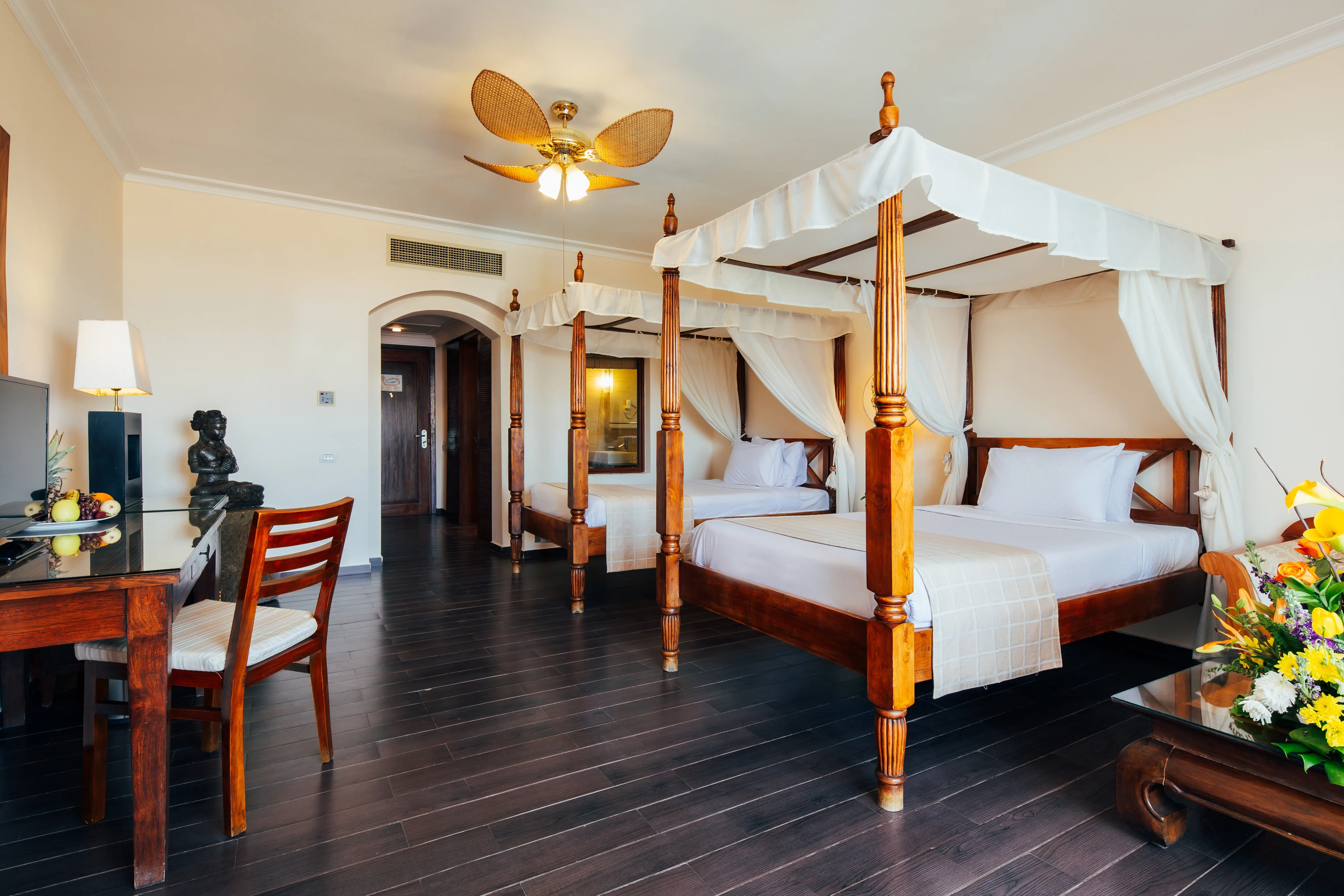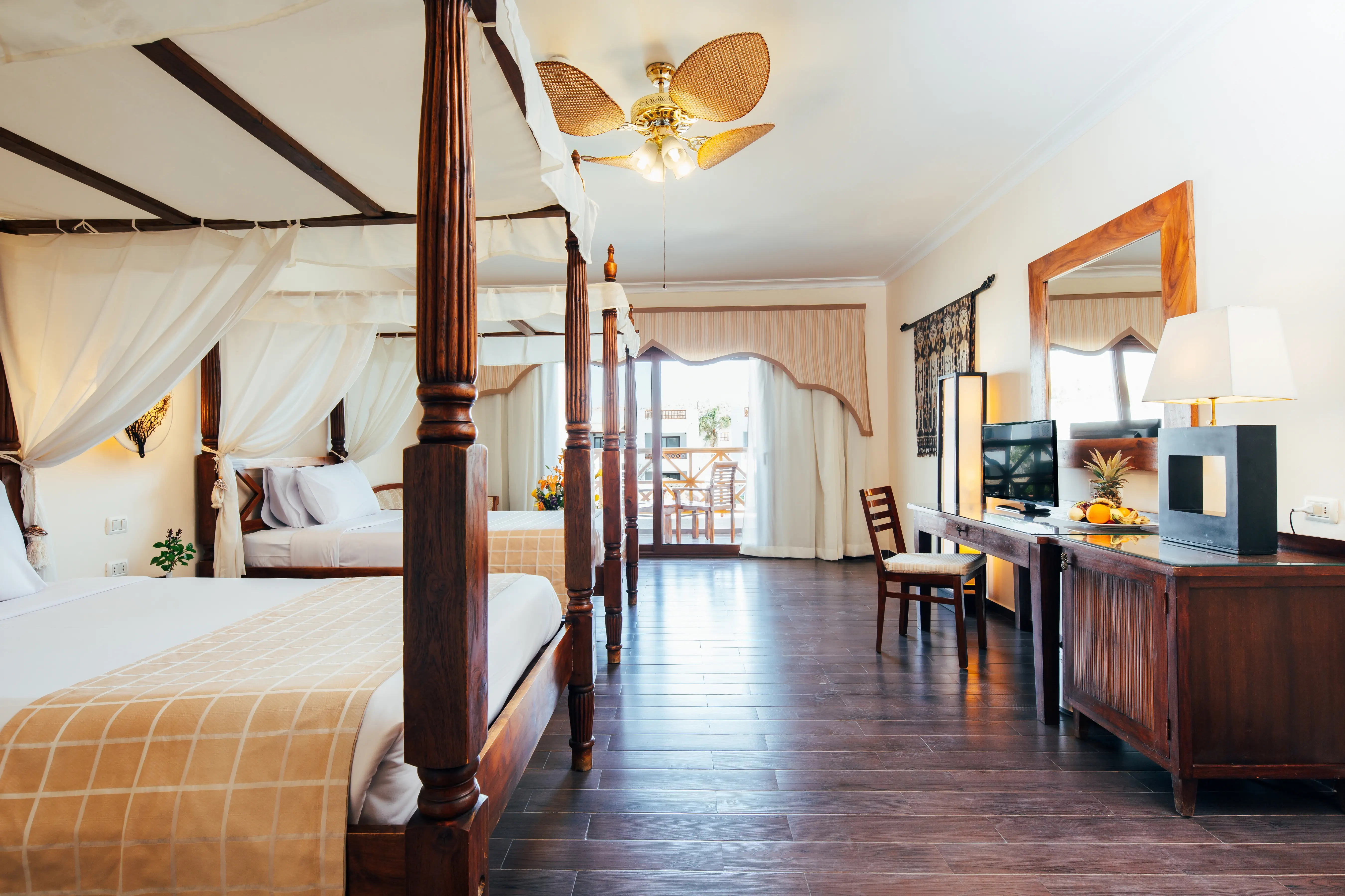Dla max. 4 osób, Przestrzeń zewnętrzna: Balkon, Kanały telewizji: Angielski, Telefon w pokoju, prysznic, Powierzchnia pokoju: ok. 38 m2, Dostawka: sofa, Rodzaj podłogi: płytki, Sprzątanie codziennie, 1 sypialnia, Maksymalna liczba osób dorosłych: 3, Maksymalna liczba dzieci: 2, Widok na ogród i morze,Widok na ogród,Widok na jezioro,Od strony morza,Widok na morze, Liczba łazienek: 1, Liczba toalet: 1, Zestaw do parzenia kawy i herbaty, Klimatyzacja: Klimatyzacja indywidualna