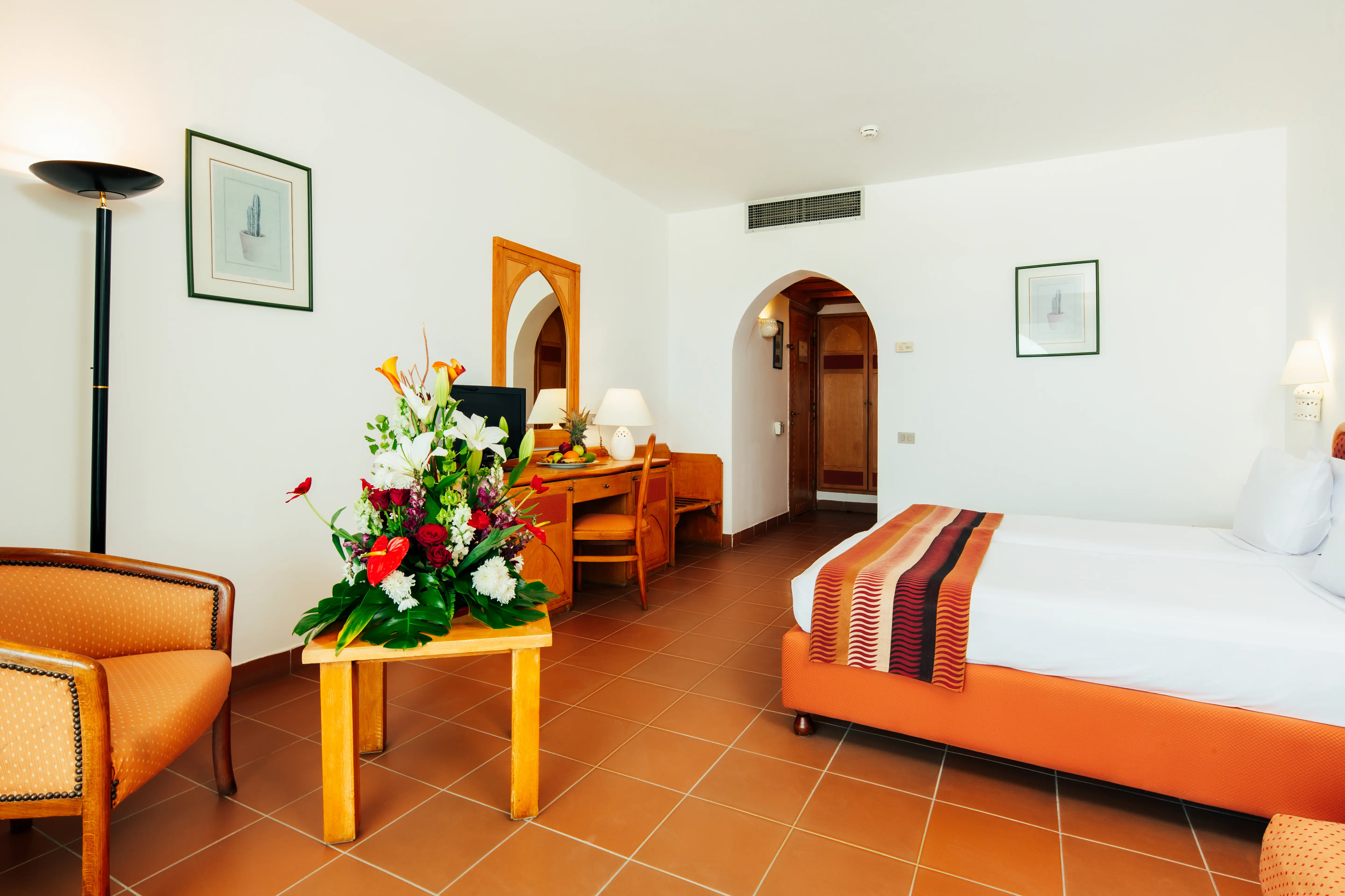 Dla max. 2 osób, Przestrzeń zewnętrzna: Balkon, Kanały telewizji: Angielski, Telefon w pokoju, prysznic, Powierzchnia pokoju: ok. 33 m2, Rodzaj podłogi: płytki, Sprzątanie codziennie, 1 sypialnia, Maksymalna liczba osób dorosłych: 2, Maksymalna liczba dzieci: 0, Widok niesprecyzowany , Liczba łazienek: 1, Liczba toalet: 1, Zestaw do parzenia kawy i herbaty, Klimatyzacja: Klimatyzacja indywidualna