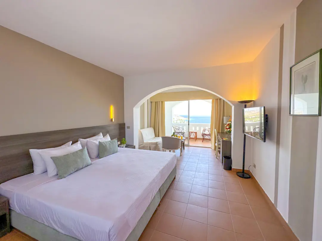Dla max. 3 osób, Przestrzeń zewnętrzna: Balkon, Kanały telewizji: Angielski, Telefon w pokoju, prysznic, Powierzchnia pokoju: ok. 39 m2, Dostawka: sofa, Rodzaj podłogi: płytki, Sprzątanie codziennie, 1 sypialnia, Maksymalna liczba osób dorosłych: 2, Maksymalna liczba dzieci: 1, Frontalny widok na plażę,Od strony basenu,Frontalny widok na basen,Widok na basen i morze,Widok na basen,Frontalny widok na morze,Od strony morza i basenu,Widok na morze, Liczba łazienek: 1, Liczba toalet: 1, Zestaw do parzenia kawy i herbaty, Klimatyzacja: Klimatyzacja indywidualna