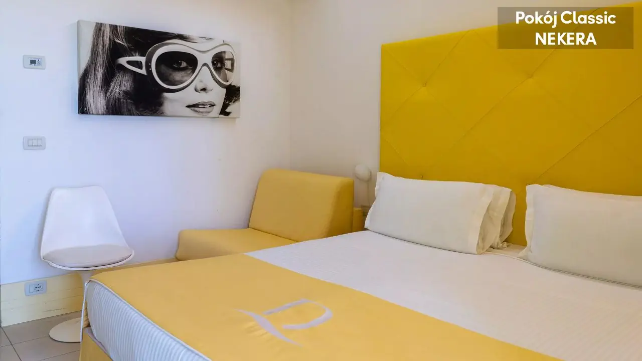 Pokój Classic, dla maks. 2 osób dorosłych, łózko podwójne lub 2 łóżka pojedyncze, klimatyzacja, sejf, TV-Sat., telefon (płatny), minibar (płatny), prywatna łazienka (prysznic, toaleta, suszarka do włosów, mini kosmetyki), umeblowany balkon lub taras. Pokój Superior Sea View: ok. 25–28 m², dla maks. 3 osób dorosłych, poza tym wyposażony jak pokoje Standard. Pokój Prestige z widokiem na morze, dla max 3 osób dorosłych, łóżko podwójne lub 2 łóżka pojedyncze, sofa, poza tym wyposażone jak pokój Classic. Pokój rodzinny, dla max 4 osób dorosłych, sypialnia z łóżkiem podwójnym lub 2 łóżkami pojedynczymi, salon oddzielony drzwiami przesuwnymi z podwójną sofą lub dwoma sofami. Poza tym wyposażony jak pokój Classic.