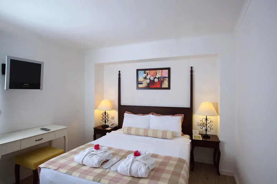 Zlokalizowane są w 4 budynkach: - 1 budynek główny (liczba pięter: 2, liczba wind: 1) - 3 aneksy (liczba pięter: 2, liczba wind: 0) Typy pokoi: - pokoje standardowe dla max. 2 os.: klimatyzacja indywidualna, sejf (bezpłatny), zestaw do parzenia kawy/herbaty (bezpłatny), minibar (płatny, uzupełniany codziennie), TV, telefon, łazienka (prysznic, WC), balkon lub taras - j suite dla max. 4 os.: salon, 1 sypialnia, klimatyzacja indywidualna, sejf (bezpłatny), zestaw do parzenia kawy/herbaty (bezpłatny), minibar (płatny, uzupełniany codziennie), TV, telefon, łazienka (prysznic, WC), balkon lub taras - pokoje deluxe dla max. 3 os.: 1 sypialnia, klimatyzacja indywidualna, sejf (bezpłatny), zestaw do parzenia kawy/herbaty (bezpłatny), minibar (płatny, uzupełniany codziennie), TV, telefon, łazienka (prysznic, WC), balkon lub taras - pokoje deluxe marina view dla max. 3 os.: 1 sypialnia, klimatyzacja indywidualna, sejf (bezpłatny), zestaw do parzenia kawy/herbaty (bezpłatny), minibar (płatny, uzupełniany codziennie), TV, telefon, łazienka (prysznic, WC)
