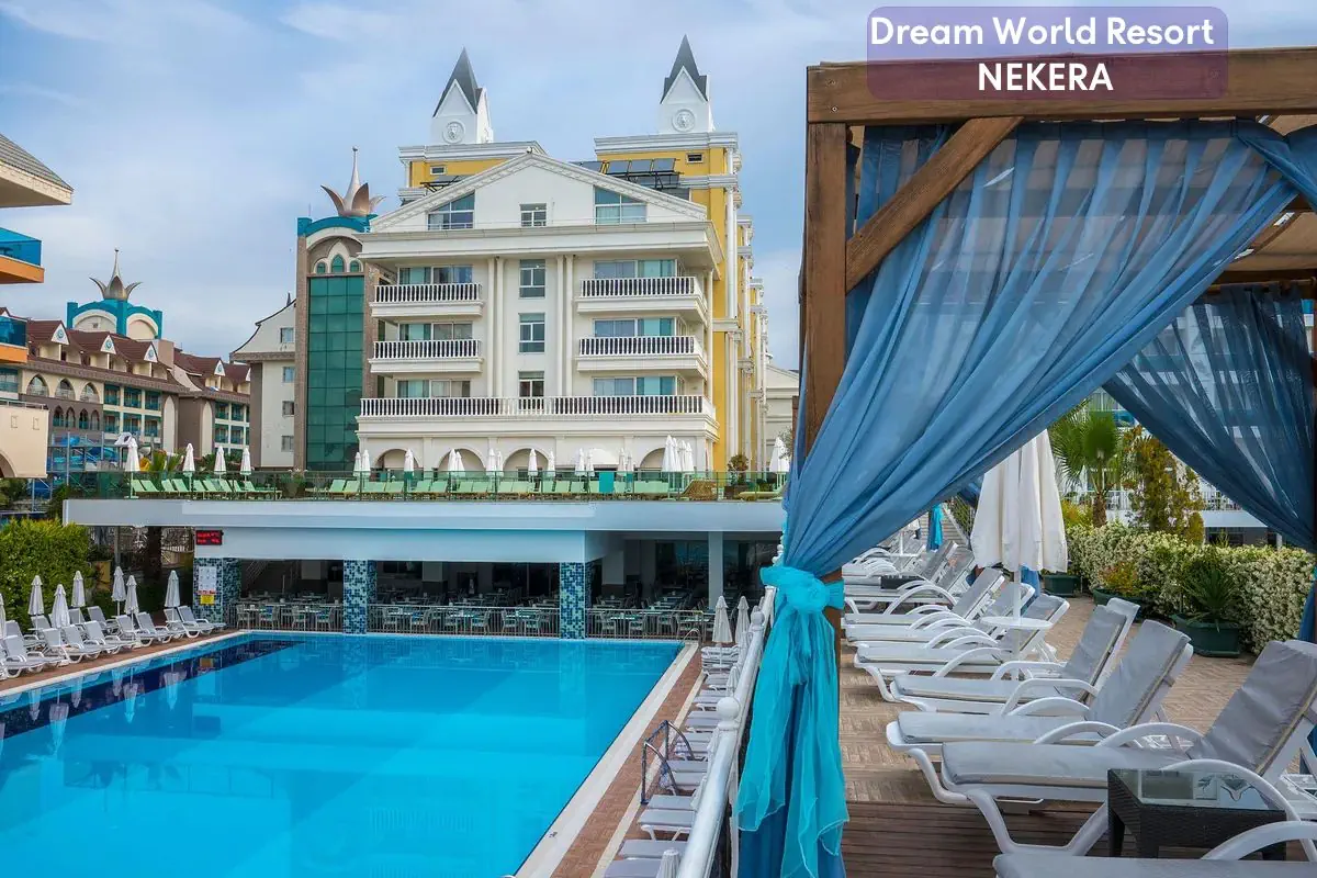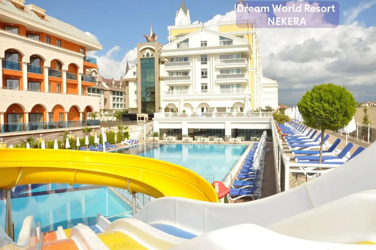 Dream World Resort & Spa to elegancki, pięciogwiazdkowy hotel all inclusive położony w tętniącej życiem dzielnicy Evrenseki – Side nad Morzem Śródziemnym. Obiekt łączy komfortowe zakwaterowanie z rozbudowaną ofertą rekreacyjną i bogatą gamą udogodnień, dzięki czemu jest atrakcyjnym wyborem zarówno dla rodzin z dziećmi, jak i par czy grup znajomych. Bliskość plaży, nowoczesne baseny oraz strefa wellness sprawiają, że Goście mogą cieszyć się relaksem, aktywnym wypoczynkiem i smaczną kuchnią w formule all inclusive.
