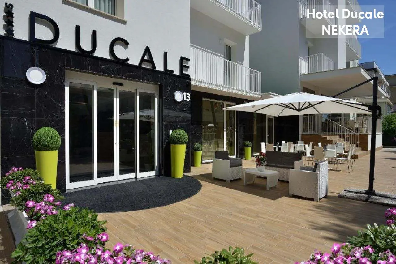 w popularnym nadmorskim kurorcie Rimini, w pobliżu nadmorskiej promenady. Port lotniczy Rimini oddalony o ok. 1 km, park rozrywki Fiabilandia ok. 1,1 km. Restauracje, sklepy, bary, punkty rozrywki w odległości 50-100 m.