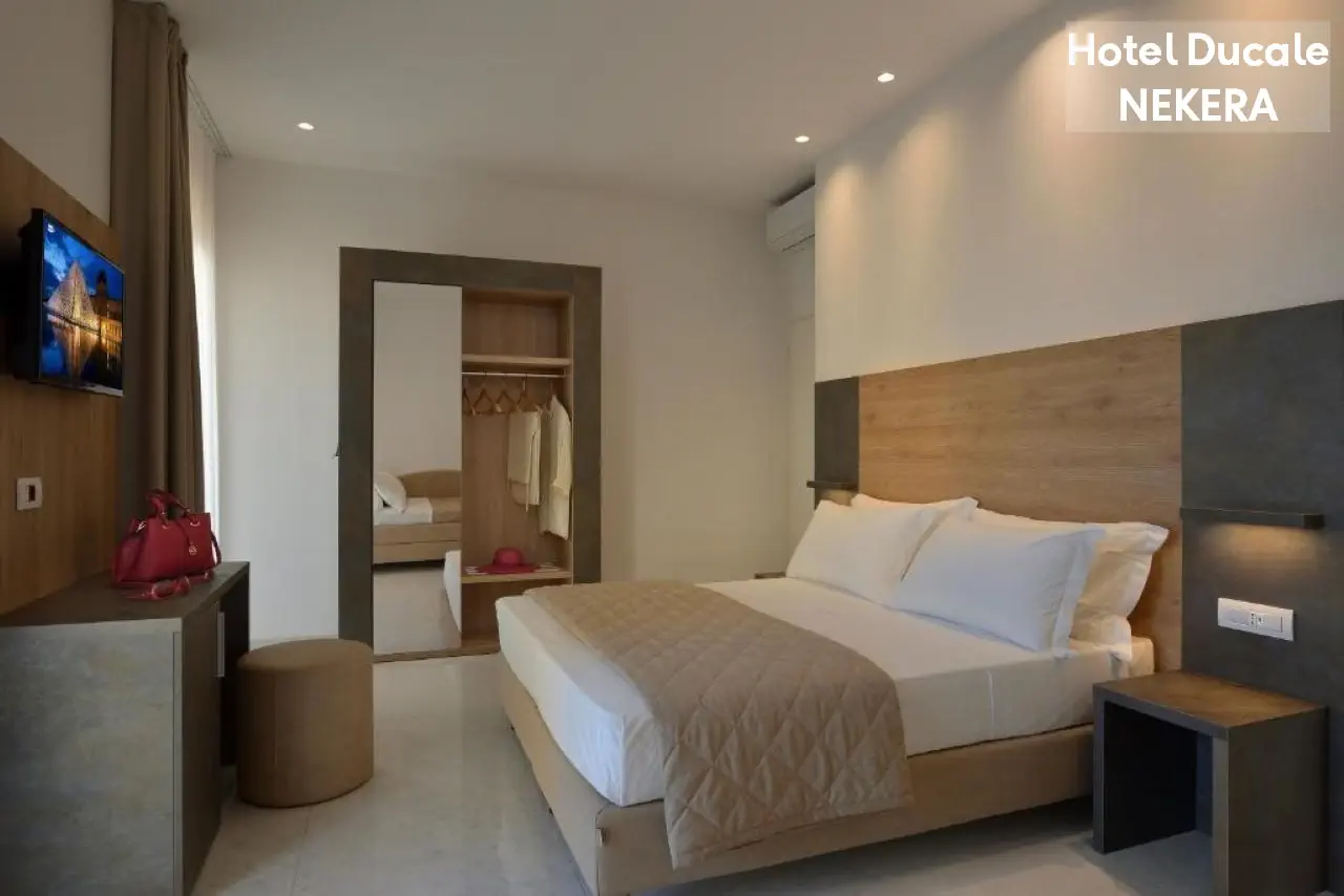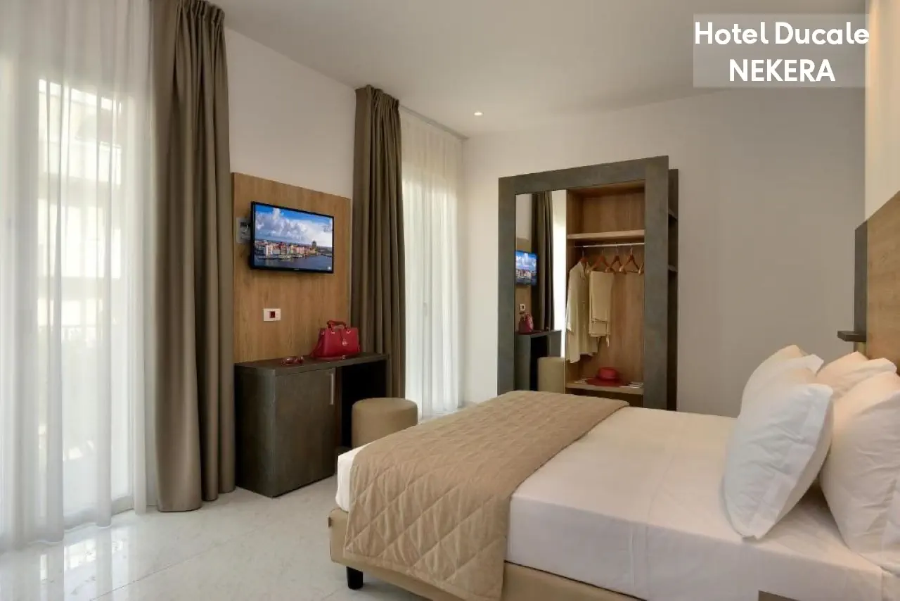 nowocześnie, komfortowo wyposażone pokoje dwu,- trzy,- czteroosobowe: ok. 13-16 m2; klimatyzacja, TV-Sat, telefon, sejf, minibar (za opłatą), prysznic, WC, suszarka. Łóżeczko dla dziecka do 2 lat za opłatą ok. 20 EUR / doba.