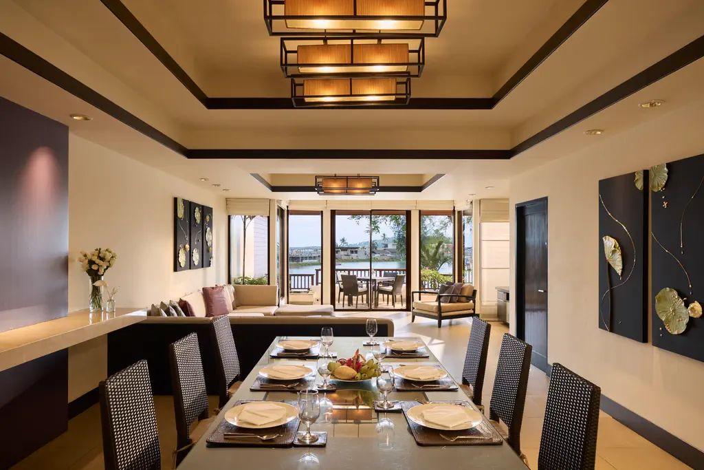 Dla max. 6 osób, Przestrzeń zewnętrzna: Taras, Kanały telewizji: Angielski, Telefon w pokoju, Aneks kuchenny, wanna i prysznic , Powierzchnia pokoju: ok. 292 m2, Dostawka: łóżko rozkładane, Rodzaj podłogi: płytki, Sprzątanie codziennie, Salon, część jadalniana, 2 sypialnie, Drzwi łączące między pokojami, Maksymalna liczba osób dorosłych: 6, Maksymalna liczba dzieci: 0, Kwiaty i owoce, Prysznic na świeżym powietrzu, Widok na lagunę, Prywatny basen, Liczba łazienek: 2, Liczba toalet: 2, Zestaw do parzenia kawy i herbaty, Klimatyzacja: Klimatyzacja indywidualna