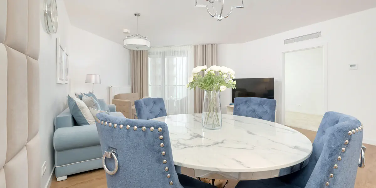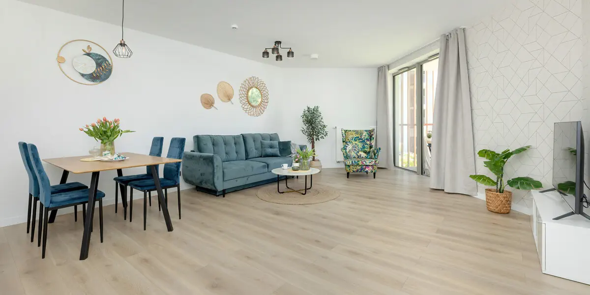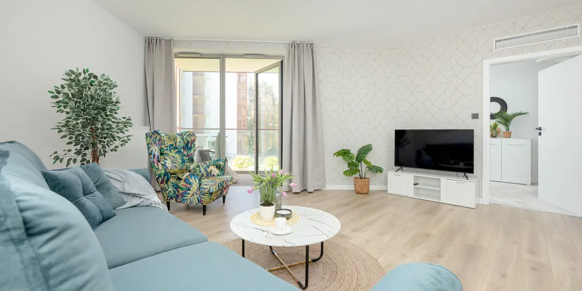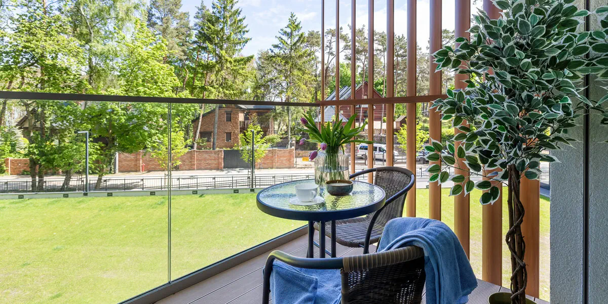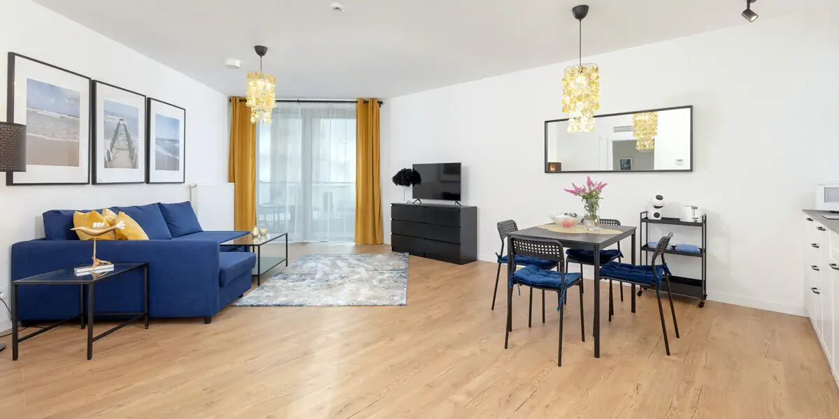 Komfortowy dwupokojowy apartament z balkonem z bocznym widokiem na morze. W eleganckiej sypialni wygodne łóżko i szafa, w przestronnym salonie część wypoczynkowa, jadalniana i kompleksowo wyposażony aneks kuchenny z pralką i zmywarką do naczyń. Dodatkowo 2 leżaki