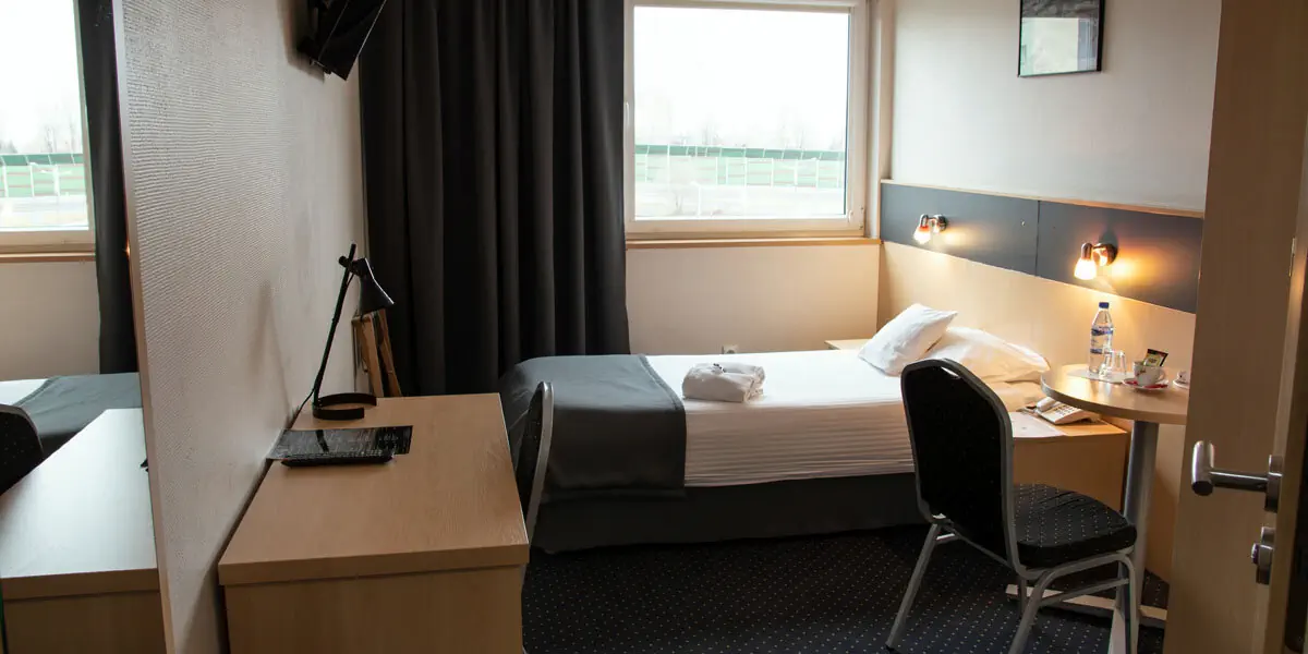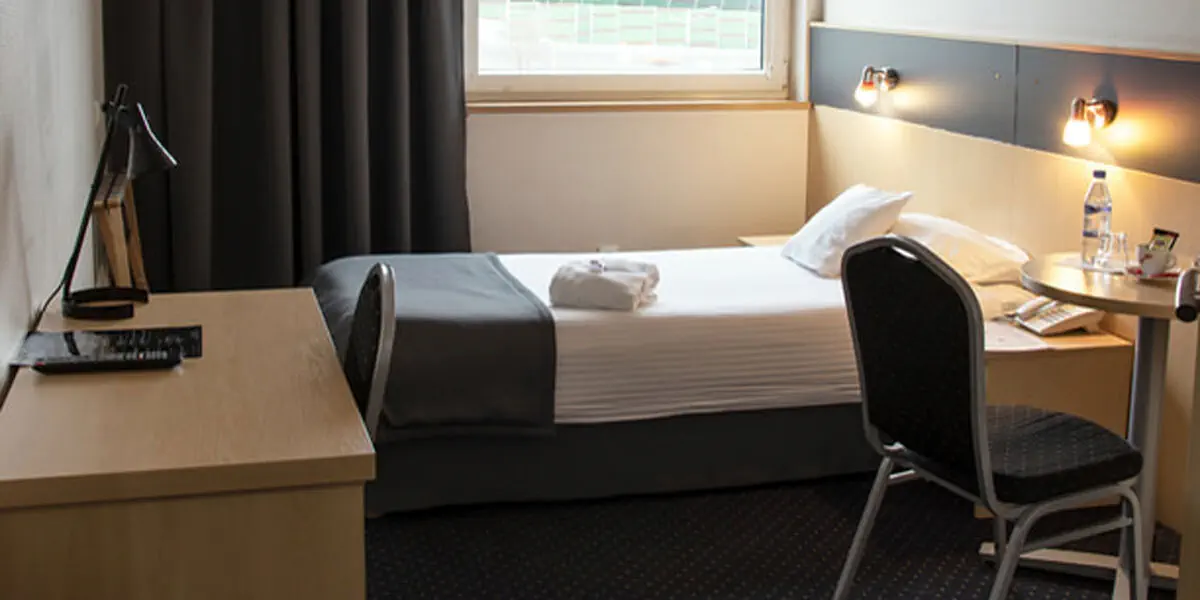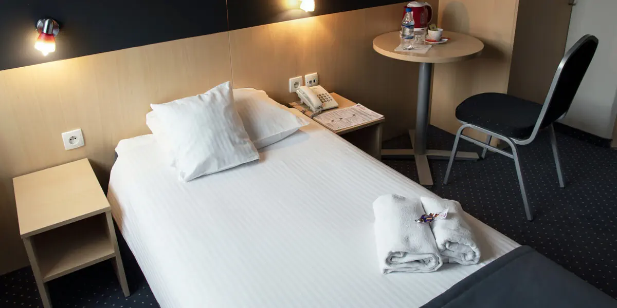 Komfortowy pokój przeznaczony dla 1 osoby. W wyposażeniu: TV, WiFi, czajnik elektryczny oraz prywatna łazienka z kabiną prysznicową i suszarką do włosów