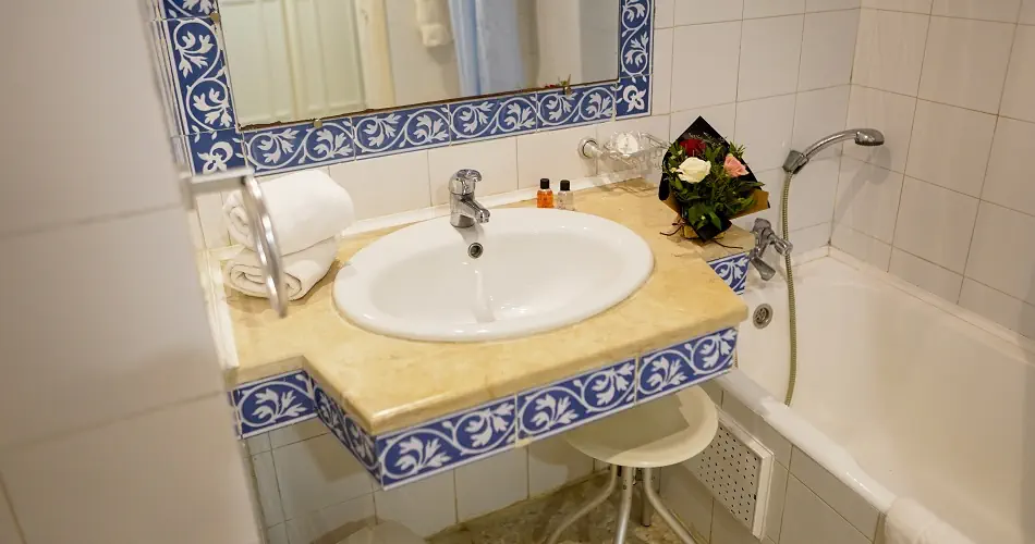 Pokój Standard - Klimatyzacja centralnie sterowana (15.06-15.09.) - Łazienka z prysznicem lub wanną, WC - TV-Sat, telefon - Sejf - płatny 1 EUR / dzień - Większość pokoi posiada balkon
