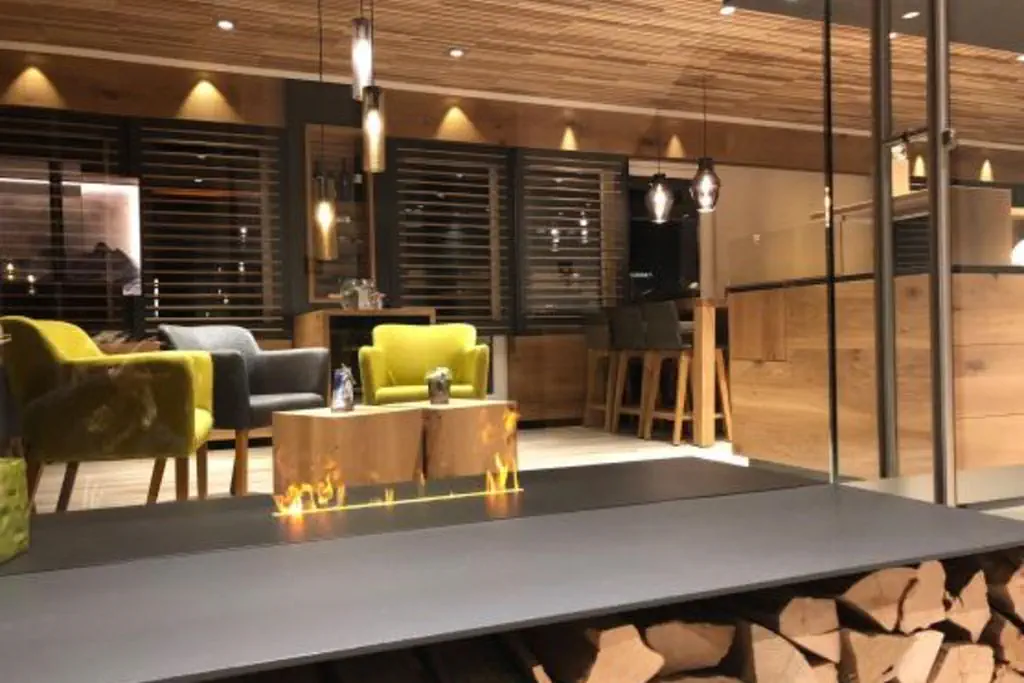 do centrum ok. 300 m, lodowiec ok. 900 m, na wysokości 1800 m, do dolnej stacji kolejki ok. 450 m, ski bus ok. 50 m.