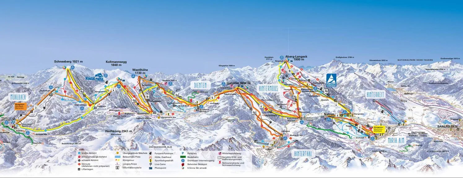 120 km tras narciarskich, w tym niezwykle długa i urozmaicona trasa Königstour (35 km) z przepięknymi widokami na otaczające dolinę szczyty górskie. - Grossarltal (Grossarl, Dorfgastein)