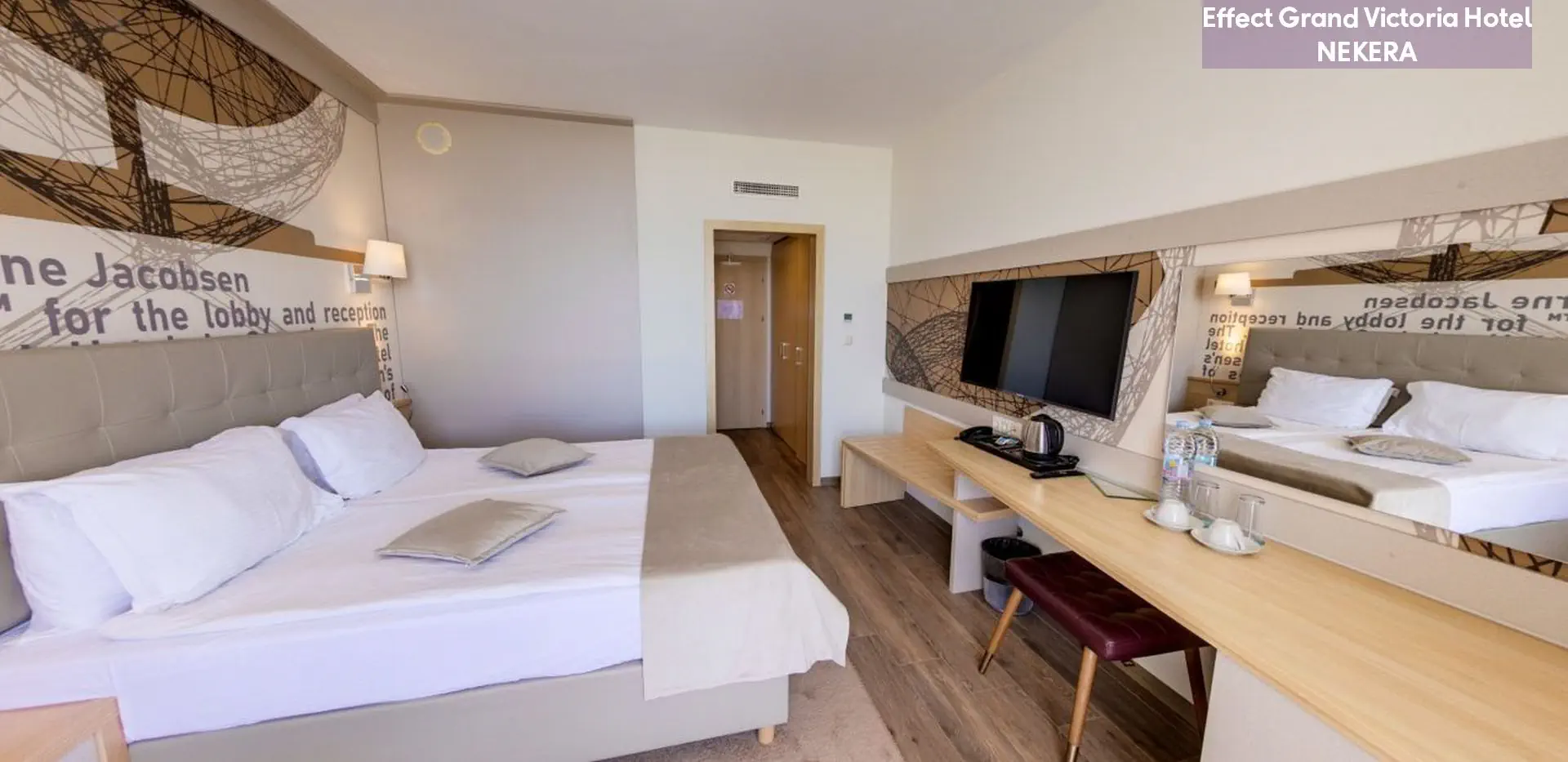Standard: - powierzchnia ok. 20 m2 - klimatyzacja centralnie sterowana - TV-SAT, telefon - WIFI ( bezpłatne) - minibar/ lodówka (piwo,woda i soft drinki w cenie pobytu) - sejf ( bezpłatny ) - łazienka (wanna/ prysznic, WC, suszarka do włosów) - boczny lub bezpośredni widok na morze ( za dodatkową opłatą) - balkon lub taras Familly room: - powierzchnia ok. 35 m2 - 2 osobne sypialnie i przedpokój z aneksem kuchennym. - wyposażenie jak w pokoju standardowym Apartament: - powierzchnia ok 35 m - osobna sypialnia i część wypoczynkowa wraz z aneksem kuchennym - wyposażenie jak w pokoju standardowym