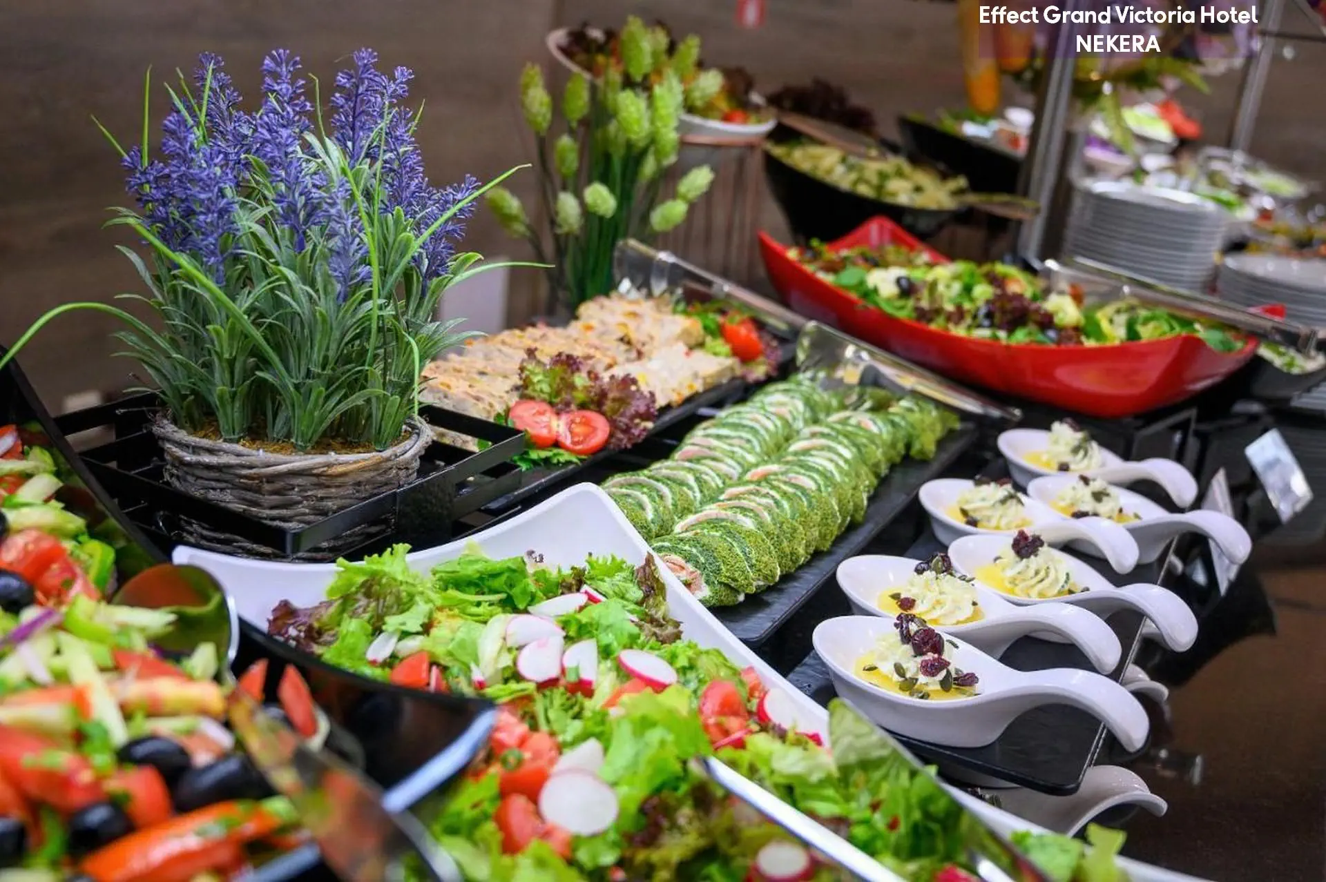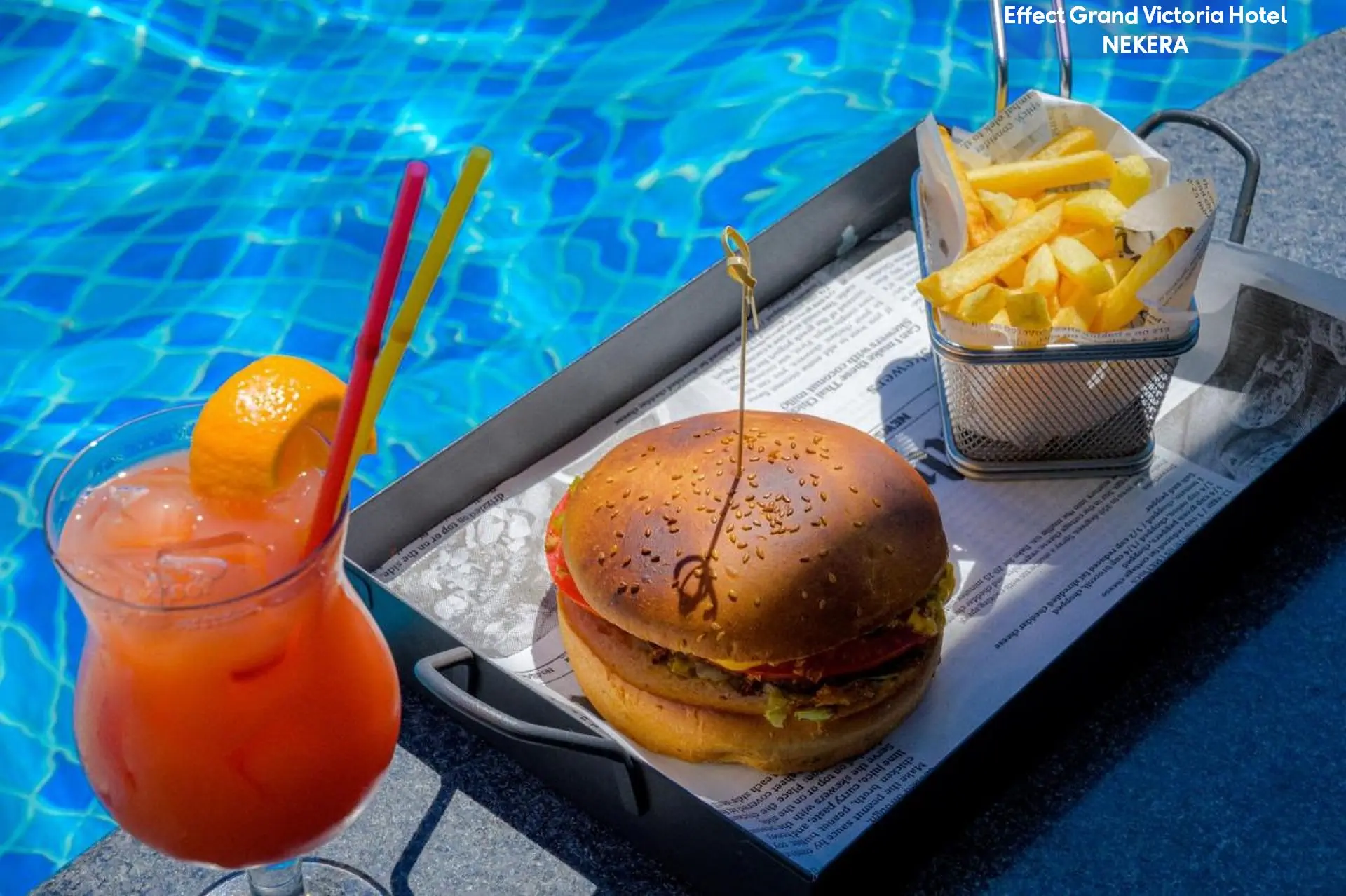 - 3 restauracje ( 1 resteuracja główna, 2 resteuracje tematyczne ) - 3 bary ( lobby bar, pool bar, beach bar ) - 1 snack bar