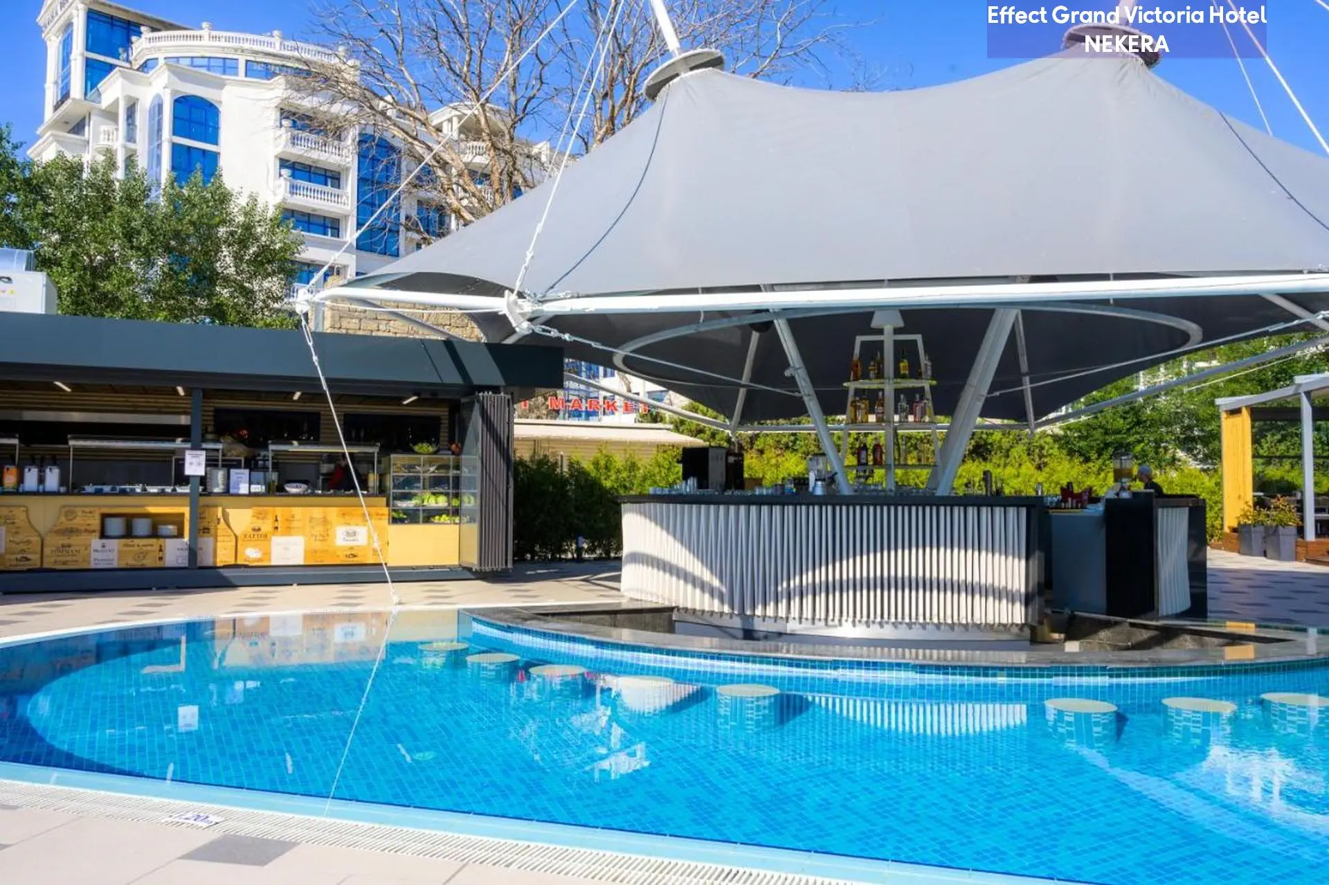 - WIFI ( bezpłatne) - 238 pokoi - mini market - recepcja - akceptowane karty kredytowe: Visa, MasterCard, American Express https://www.hotelvictoria-bg.com/en/