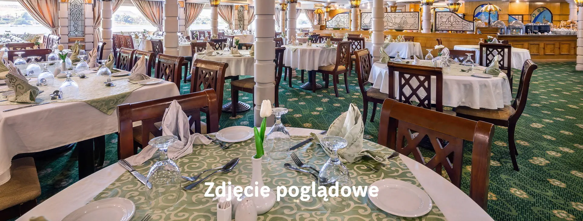 Zakwaterowanie: Hotele ****(3 rozpoczęte doby hotelowe w Hurghadzie - hotel Royal Star**** lub podobny). Do dyspozycji gości:lobby, restauracja oraz bar. Pokoje: 2-osobowe (możliwość dostawki), wszystkie klimatyzowane z łazienkami oraz najczęściej TV sat. Wyżywienie:all inclusive w hotelu w Hurghadzie: śniadania, obiady i kolacje, lokalne napoje alkoholowe i bezalkoholowe, kawa, herbata, woda, napoje gazowane zgodnie z formułą all inclusive w hotelu. Rejs po Nilu statkiem ****(4 rozpoczęte doby hotelowe). Do dyspozycji gości:restauracja, bar, mały basen oraz leżaki. Kabiny:wygodne i klimatyzowane 2-osobowe (możliwe dostawki) z łazienką i wc. Wyżywienie:śniadania, obiady i kolacje (napoje do obiadów i kolacji dodatkowo płatne). Za dopłatą wersja All Inclusive na statku: w tym lokalne napoje alkoholowe (np. whisky, za wyjątkiem wina - serwowane tylko 2 lampki do obiadu i kolacji) i bezalkoholowe (woda, herbata i napoje gazowane kawa - niektóre rodzaje dodatkowo płatne) serwowane w głównym barze (najczęściej 10:00-22:00). Uwaga!!! Napoje podawane są w plastikowych kubkach. Uwaga! Wyżywienie:śniadanie i kolacja w dniu 3. (przejazd z Hurghady do Luksoru).