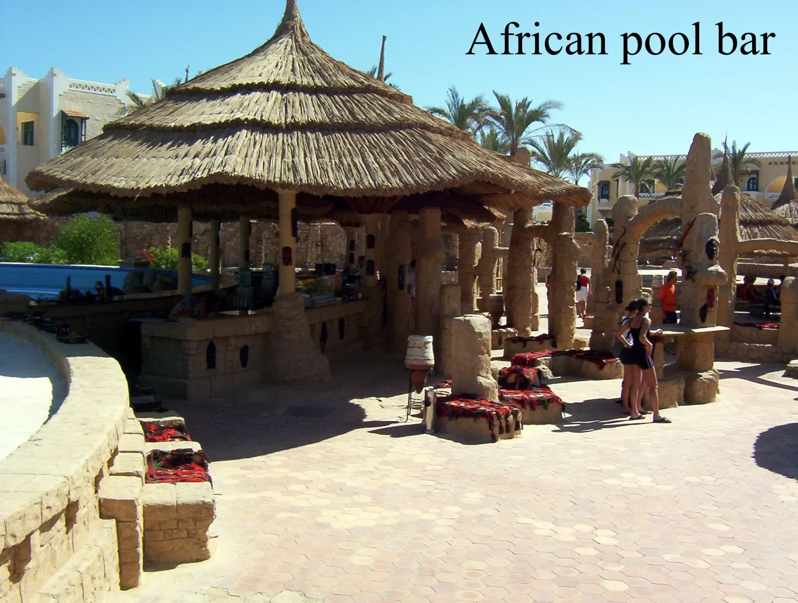 Śniadanie (07:00 - 09:30) - Club restaurant, stół szwedzki, Obiad (13:00 - 14:30) - Grill Restaurant, stół szwedzki, Kolacja (19:00 - 21:00) - Club restaurant, stół szwedzki, African Bar (08:30 - 17:30), Napoje: alkohole lokalne (08:30 - 17:30), Jacuzzi Bar (08:30 - 01:00), Napoje: alkohole lokalne (08:30 - 01:00), Beach Bar (09:00 - 17:00), Napoje: alkohole lokalne (09:00 - 17:00), napoje bezalkoholowe, alkohole lokalne, lody ¹⁾, cukiernia ¹⁾ - dodatkowo płatne