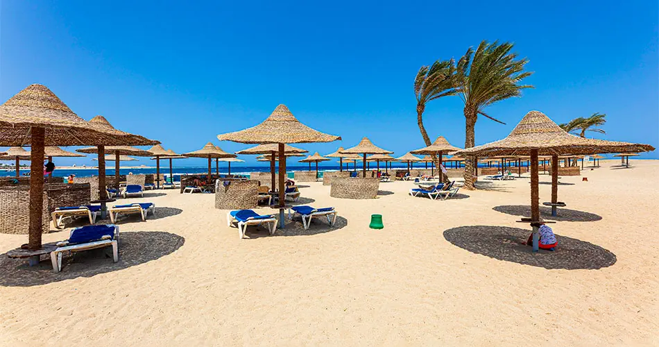 Piaszczysta, szeroka, bezpośrednio przy hotelu Łagodne zejście do morza Bogata rafa koralowa Serwis plażowy - bezpłatny