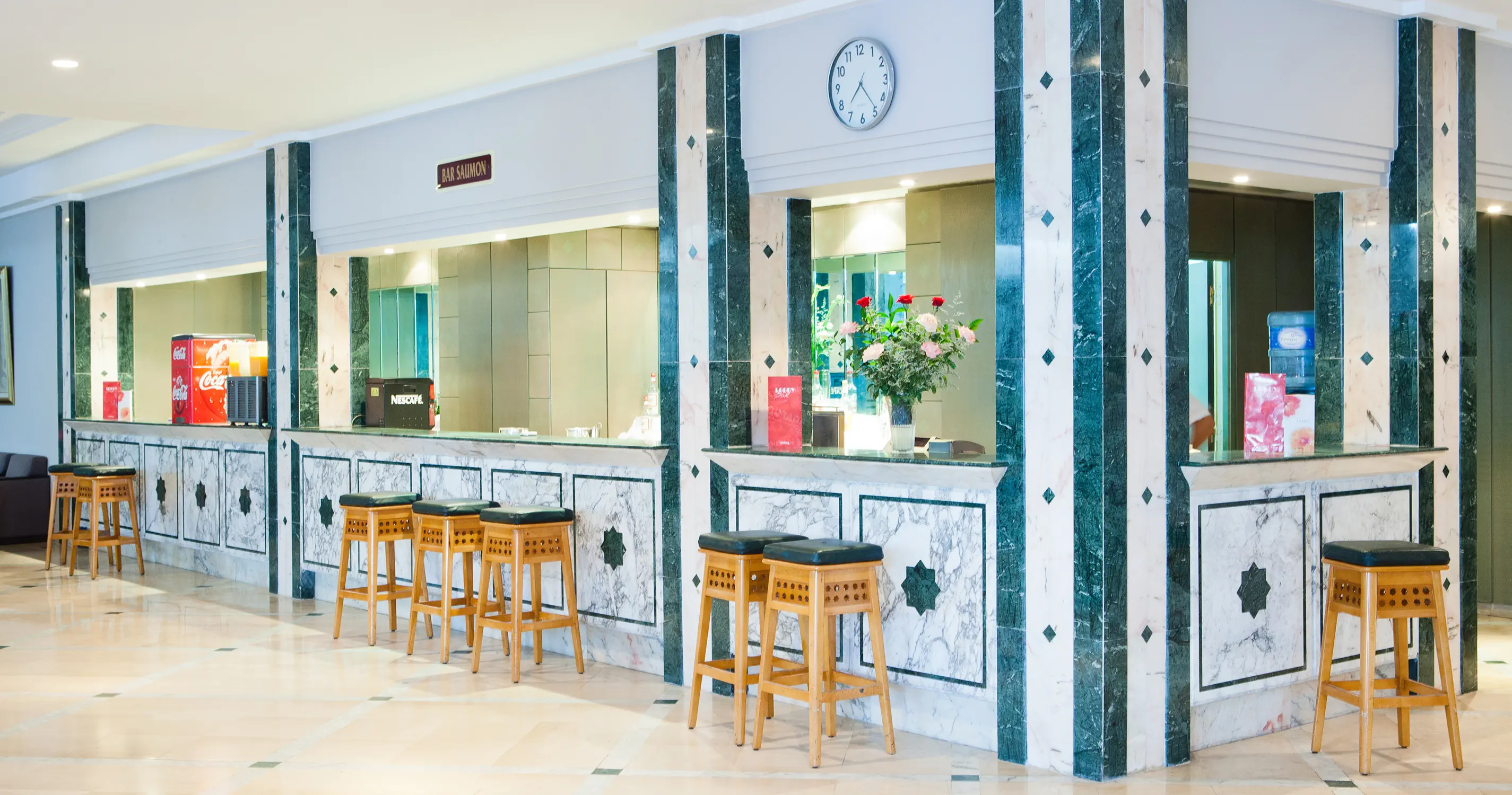 - Recepcja - 3 restauracje, 4 bary - Kawiarnia Mauretańska - shisha płatna - 4 baseny w tym 2 dla dzieci - Dyskoteka - płatna - Sejf - w recepcji płatny - Sale konferencyjne - Sklepy - Kantor - Oficjalna kategoria 4*