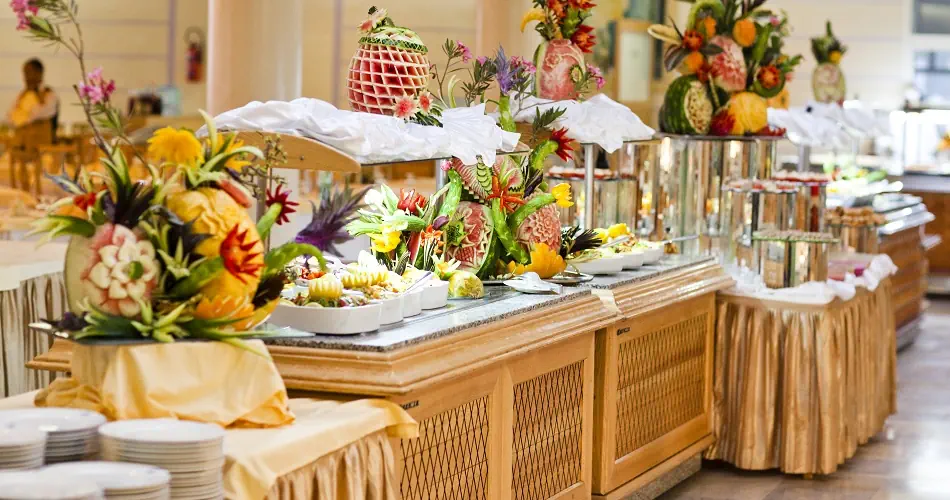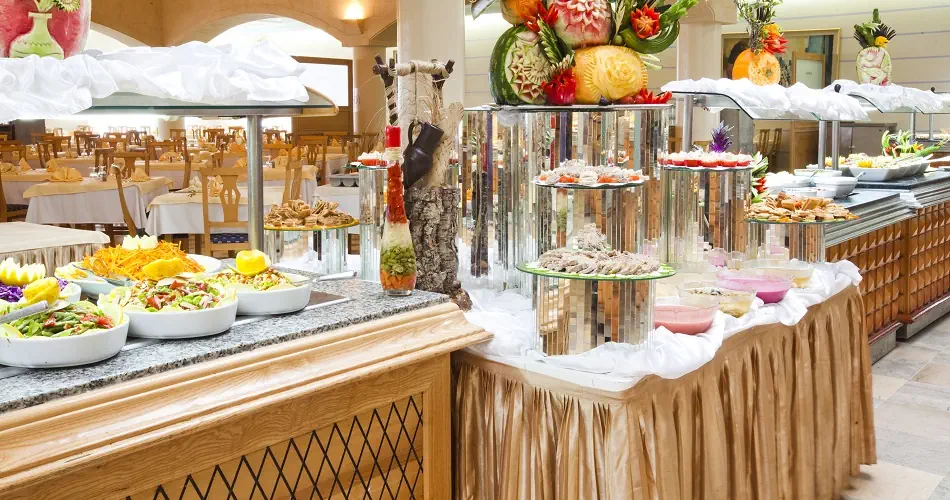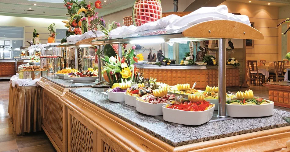 All Inclusive 24H: - Śniadanie, późne śniadanie, obiad i kolacja w formie bufetu - Popołudniowe przekąski w określonych godzinach w ciągu dnia - Nocne przekąski 24:00- 07:00 - Jedna kolacja w restauracji a'la carte (bezpłatnie raz na pobyt po dokonaniu wcześniejszej rezerwacji) - Napoje bezalkoholowe i alkohole lokalnej produkcji dostępne są 24H - Alkohole importowane są dodatkowo płatne