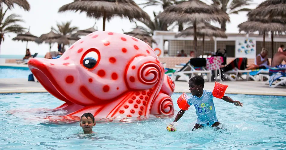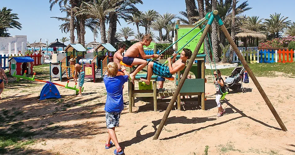 - Bezpłatnie: Animacje dzienne i wieczorne, koszykówka, rzutki, minigolf, tenis stołowy, tenis w ciągu dnia, miniklub, plac zabaw - Odpłatnie: Bilard, centrum fitness, masaż, sauna, łaźnia parowa, centrum odnowy biologicznej, tenis z oświetleniem, golf na polu golfowym Djerba (ok. 8 km).