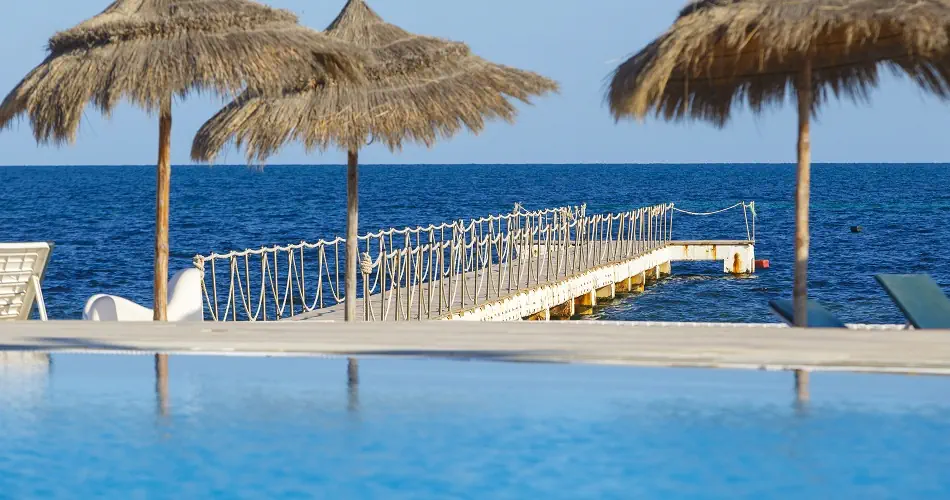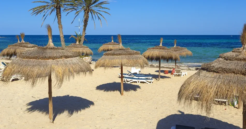 - Piaszczysta plaża tuż przy hotelu - Wejście do morza jest stopniowe (nieco kamieniste dno) - Leżaki i parasole - bezpłatne - Ręczniki plażowe dostępne po wpłaceniu depozytu ok. 20 TND - Bar - płatny