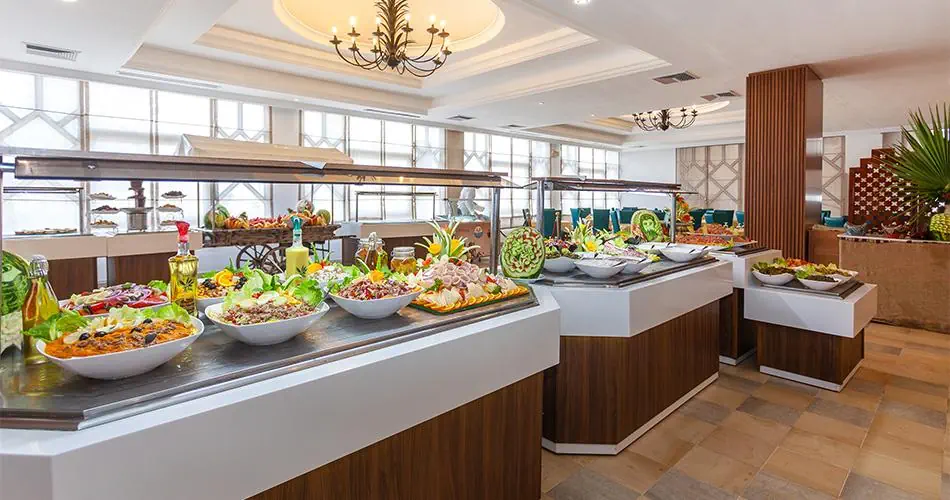 All Inclusive: Śniadanie, obiad i kolacja w formie bufetu w restauracji głównej Lekkie przekąski w określonych godzinach w ciągu dnia Napoje bezalkoholowe i alkohole lokalnej produkcji serwowane w wybranych barach hotelowych w godzinach ich otwarcia od 09:00 do 24:00 Jedna kolacja w restauracji a'la carte (bezpłatnie raz na pobyt po dokonaniu wcześniejszej rezerwacji) Alkohole importowane są dodatkowo platne.