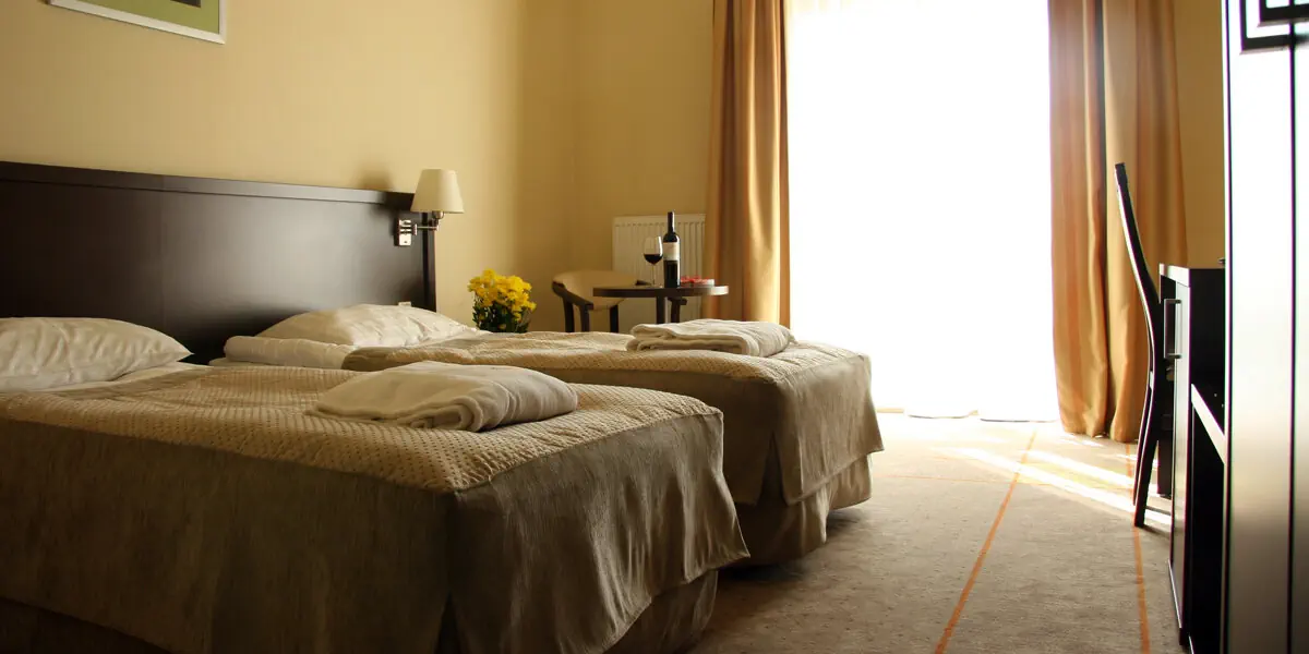- Codzienne śniadania - Codzienne obiadokolacje - Nielimitowany dostęp do centrum rekreacji, m.in: basen z jacuzzi i przeciwprądem, masaż strumieniowy (zgodnie z dostępnością) - Nielimitowany dostęp do saun: fińska, parowa oraz ziołowa (zgodnie z dostępnością) - Jednorazowy masaż aromatyczny dla każdej osoby powyżej 15 lat (25 min./osoba) - Bezpłatny parking - Internet Wi-Fi - Podatek VAT