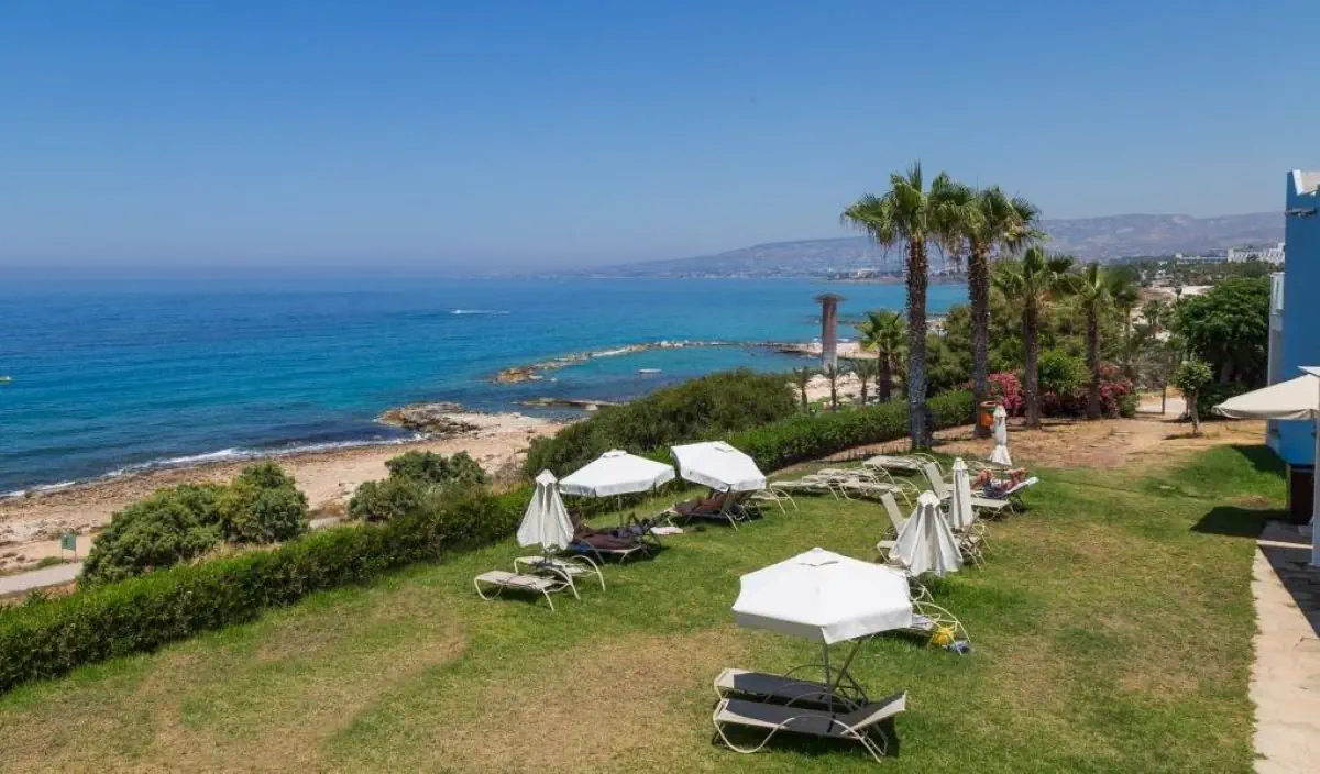 spokojne, na obrzeżach wioski Chlorakas, skąd rozpościera się przepiękny widok na zatokę. Centrum Paphos oddalone o ok. 7 km. Lotnisko w Paphos ok. 20 km. W pobliżu hotelu sklepy, restauracje, lokalne tawerny, bary.
