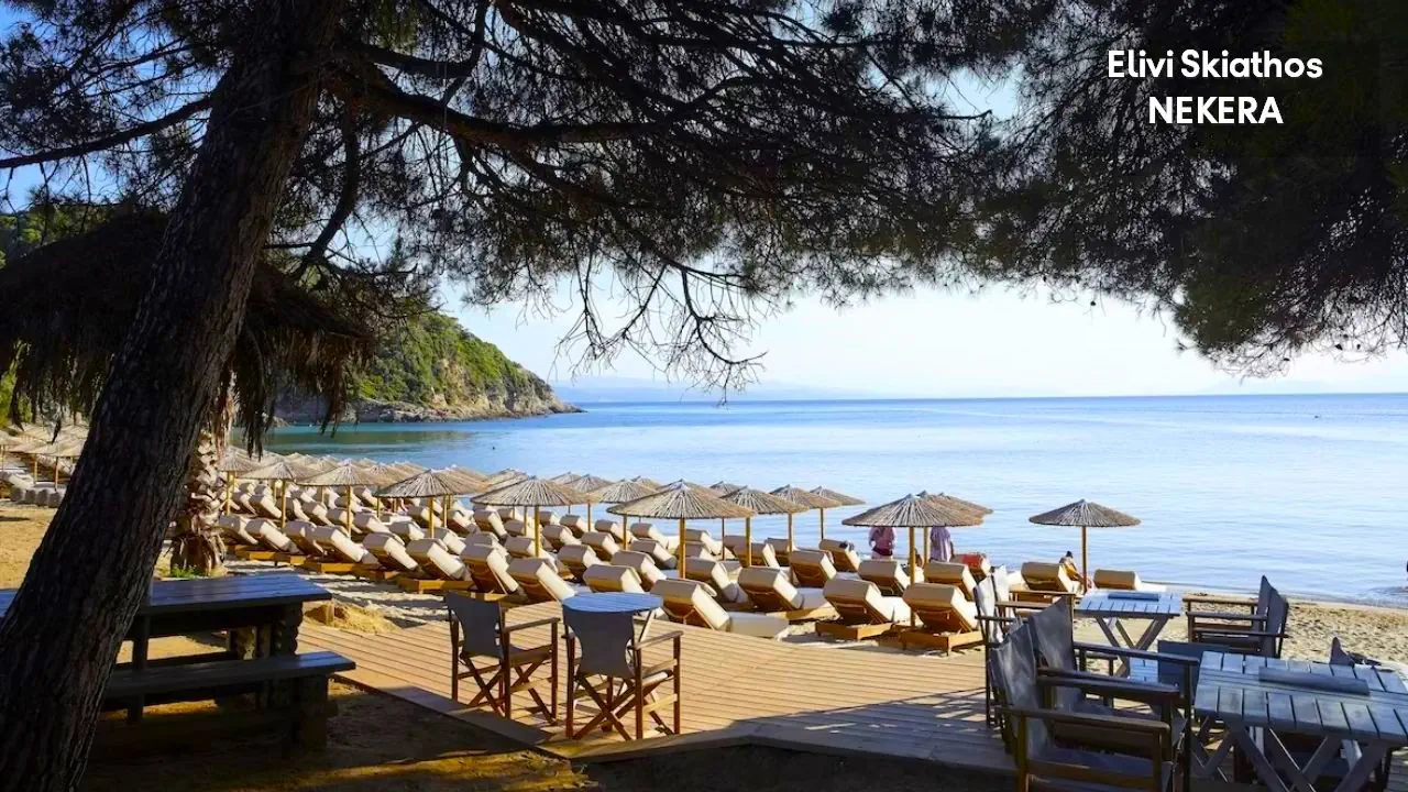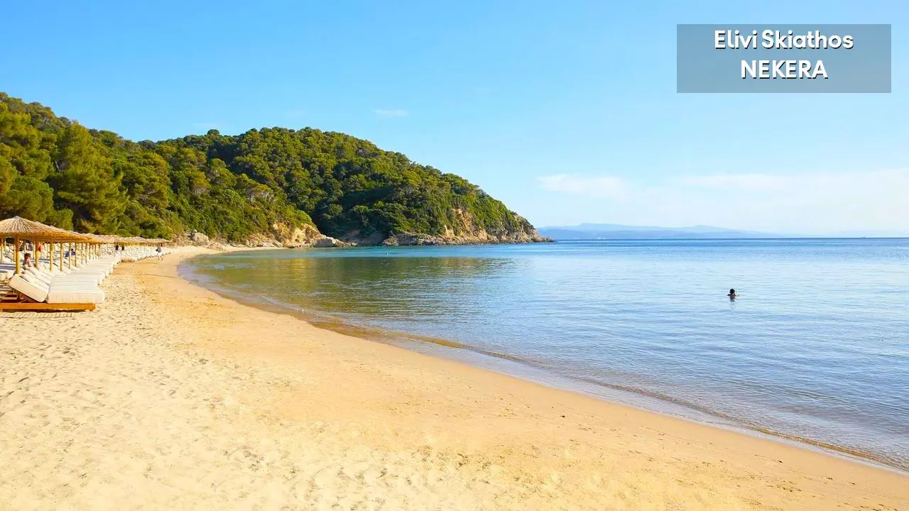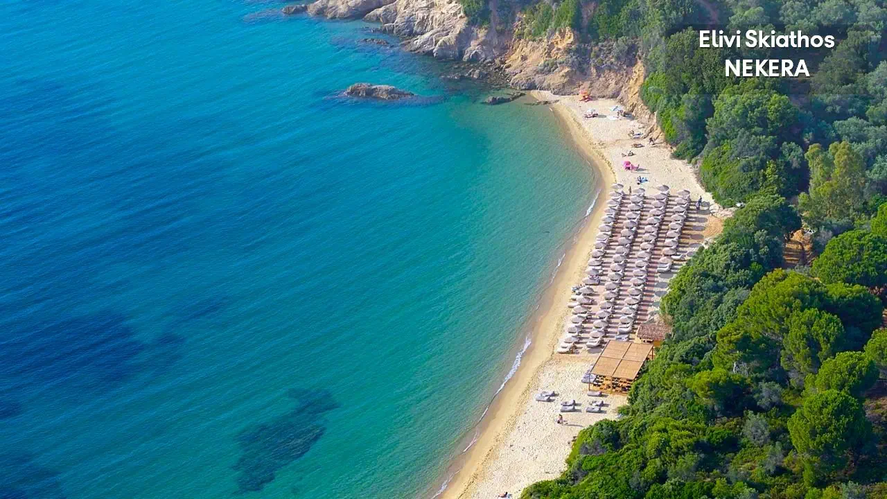 - Koukounaries - najbardziej znana plaża na wyspie z miękkim, złocistym piaskiem i otoczona lasem sosnowym - Lalaria - malownicza plaża dostępna tylko od strony morza, z białymi skałami i turkusową wodą - Agia Eleni - spokojniejsza plaża, idealna na oglądanie zachodów słońca - Mandraki - mniej popularna, dzika plaża na zachodnim wybrzeżu - Banana (Big Banana i Little Banana) - plaża z beach barami, popularna wśród młodych turystów, a Little Banana to plaża naturystyczna - Vromolimnos - popularna plaża z kameralną atmosferą, idealna do sportów wodnych. - Mniej znane plaże - Agistros, Aselinos, Kechria (odosobnione plaże, idealne dla tych, którzy szukają ciszy i kontaktu z naturą)