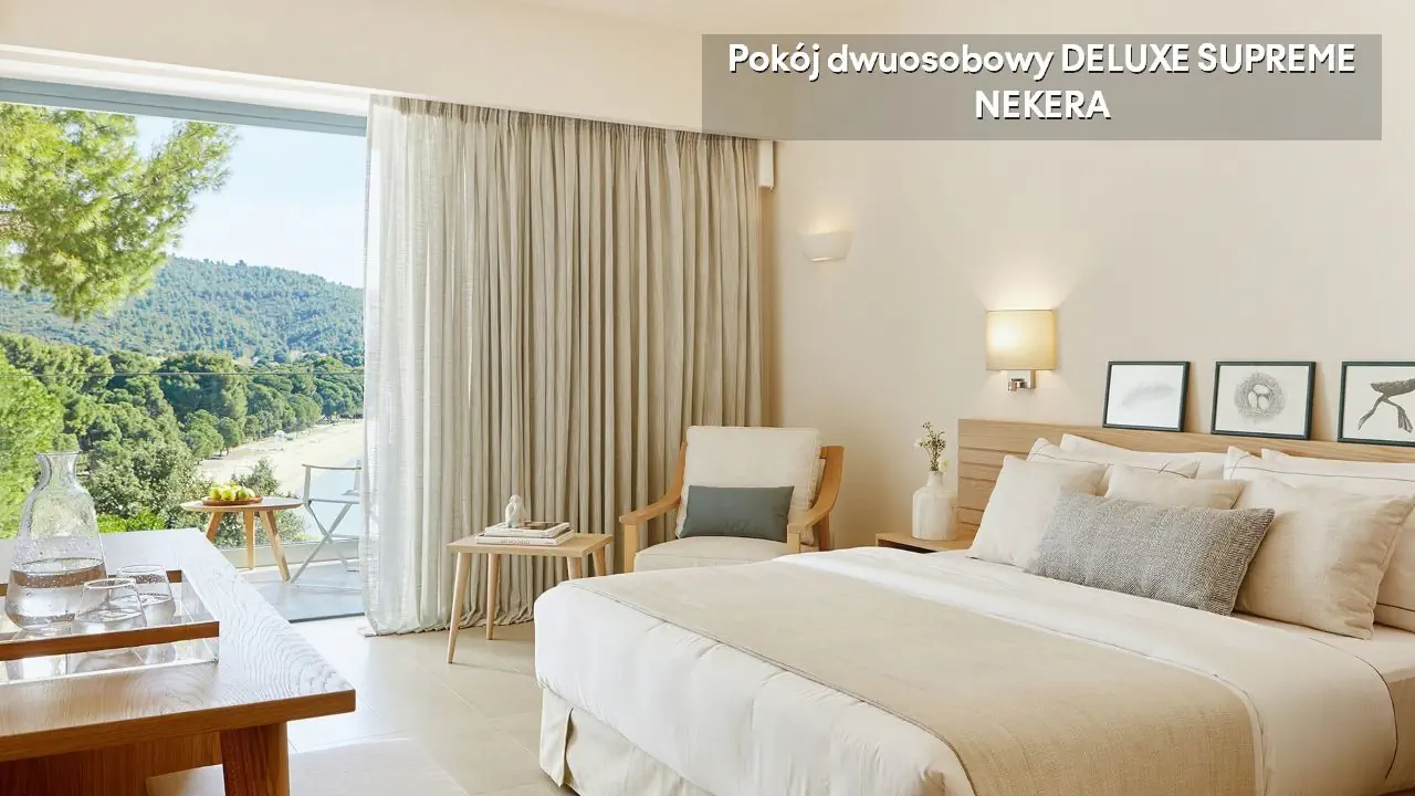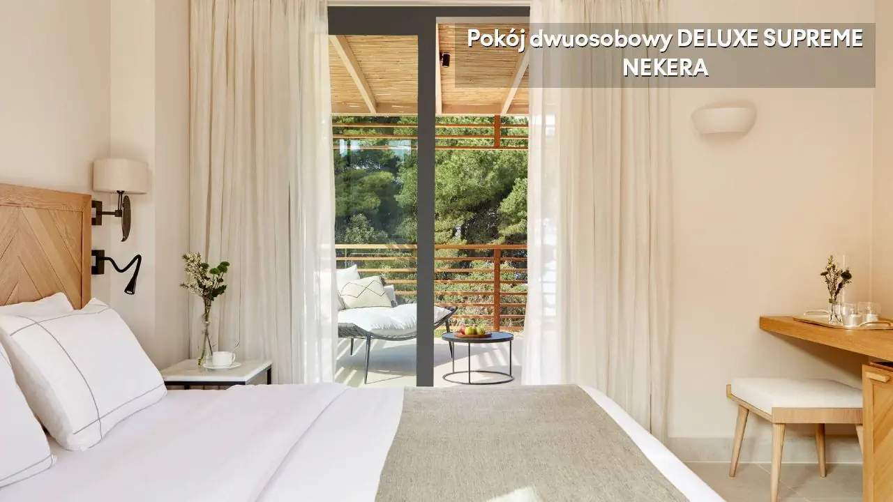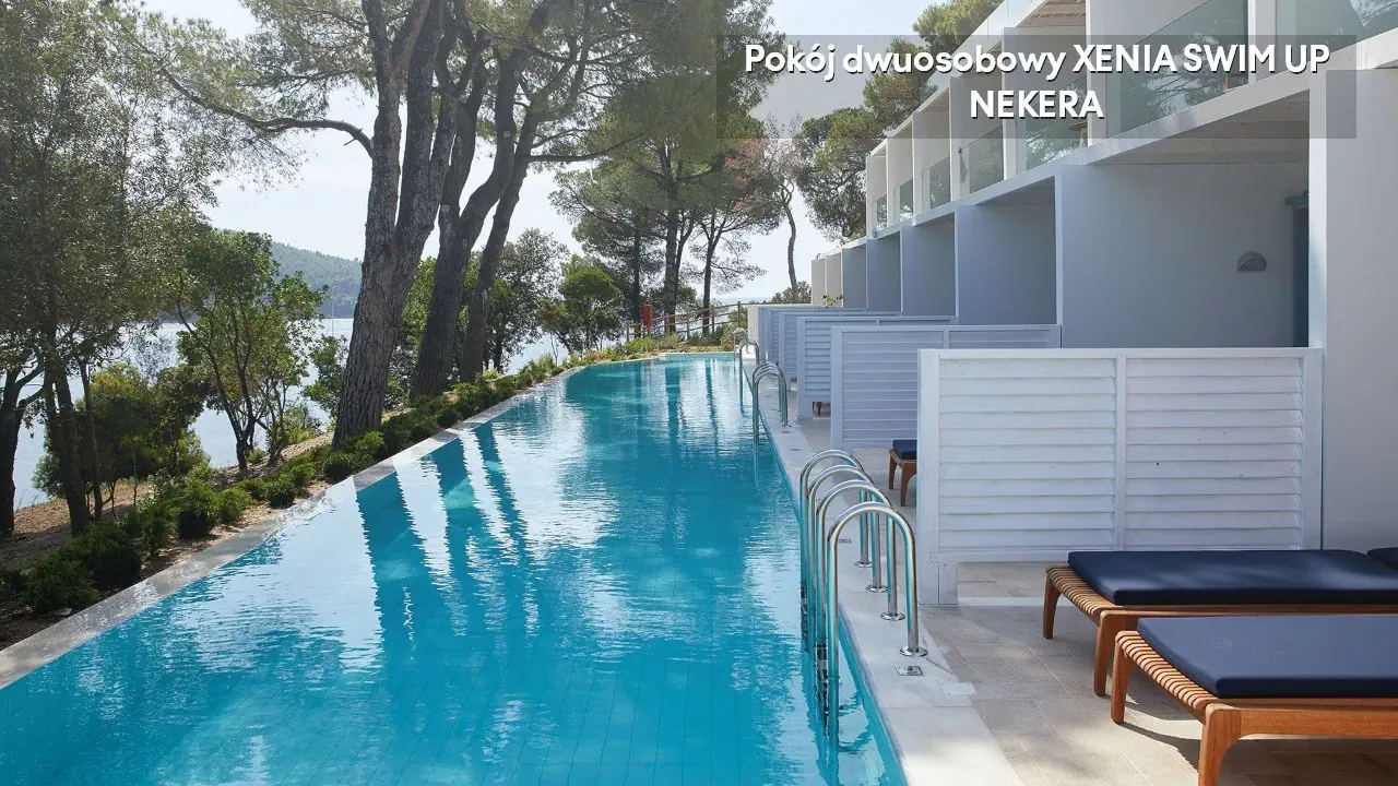 przestronne komfortowe pokoje z umeblowanym balkonem. Pokój z dostępem do basenu XENIA SMIM UP: ok. 28 m²; mogący pomieścić maks. 2 dorosłe osoby, łóżko podwójne o rozm. King-size, wybór poduszek. Wyposażenie: klimatyzacja indywidulanie sterowana, 43' TV-Sat., aplikacja serwisu dedykowana dla Gości hotelu, sejf, telefon (płatny), minibar (płatny), zestaw do parzenia kawy/herbaty z kapsułkami, prywatna łazienka (natrysk, toaleta, umywalka, suszarka do włosów, minikosmetyki, szlafrok, kapcie, ręczniki plażowe), umeblowany balkon. Umeblowany taras z leżakami, dostęp do wspólnego basenu, widok na drzewa. Pokój w części ELIVI Xenia. Pokój z dostępem SUPREME DELUXE: ok. 31 m²; mogący pomieścić maks. 2 dorosłe osoby i dziecko, łóżko podwójne o rozm. King-size i rozkładana sofa (jako dostawka), wybór poduszek. Poza tym wyposażony jak pokój z dostępem do basenu XENIA SWIM UP. Pokój w części ELIVI Nest Grove, ulokowany na pierwszym piętrze bungalowa, w bliskim położeniu plaży Banana. Suita z prywatnym basenem PREMIUM (na zapytanie).