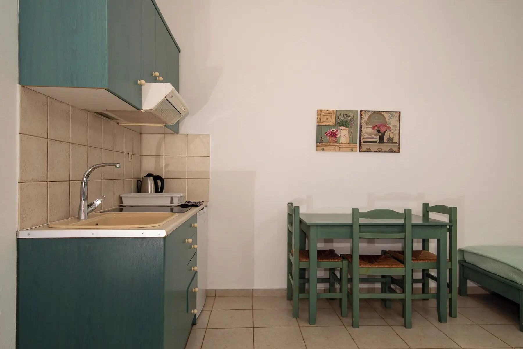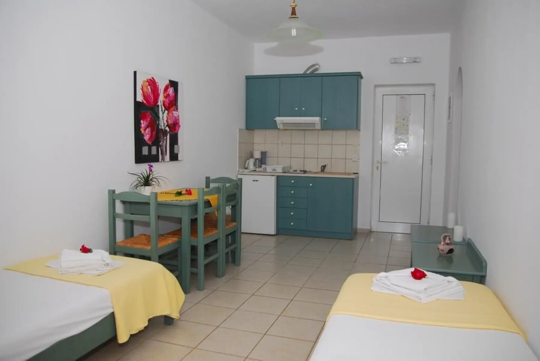 Dla max. 3 osób, Przestrzeń zewnętrzna: Balkon lub taras, Telefon w pokoju, Aneks kuchenny, prysznic, Powierzchnia pokoju: ok. 26 m2, Dostawka: łóżko rozkładane, Rodzaj podłogi: płytki, Sprzątanie raz na tydzień, 1 sypialnia, Maksymalna liczba osób dorosłych: 3, Maksymalna liczba dzieci: 2, Widok na dziedziniec, Liczba łazienek: 1, Liczba toalet: 1, Zestaw do parzenia kawy i herbaty, Klimatyzacja: Klimatyzacja indywidualna