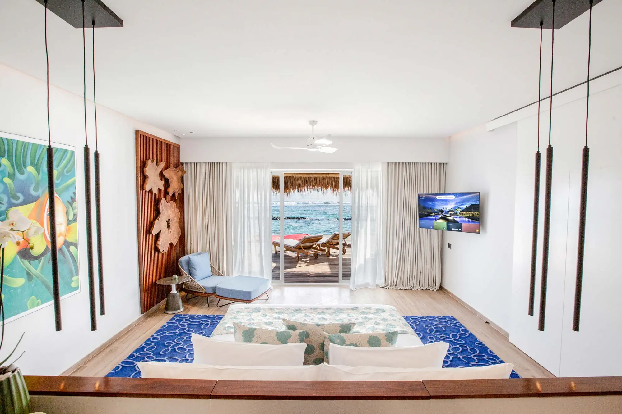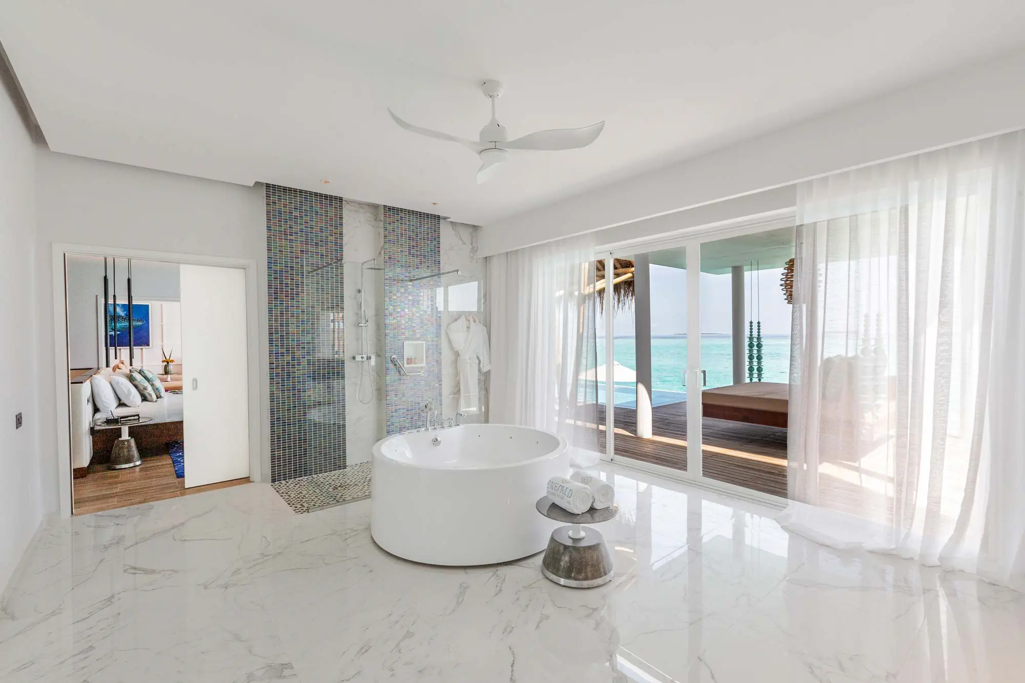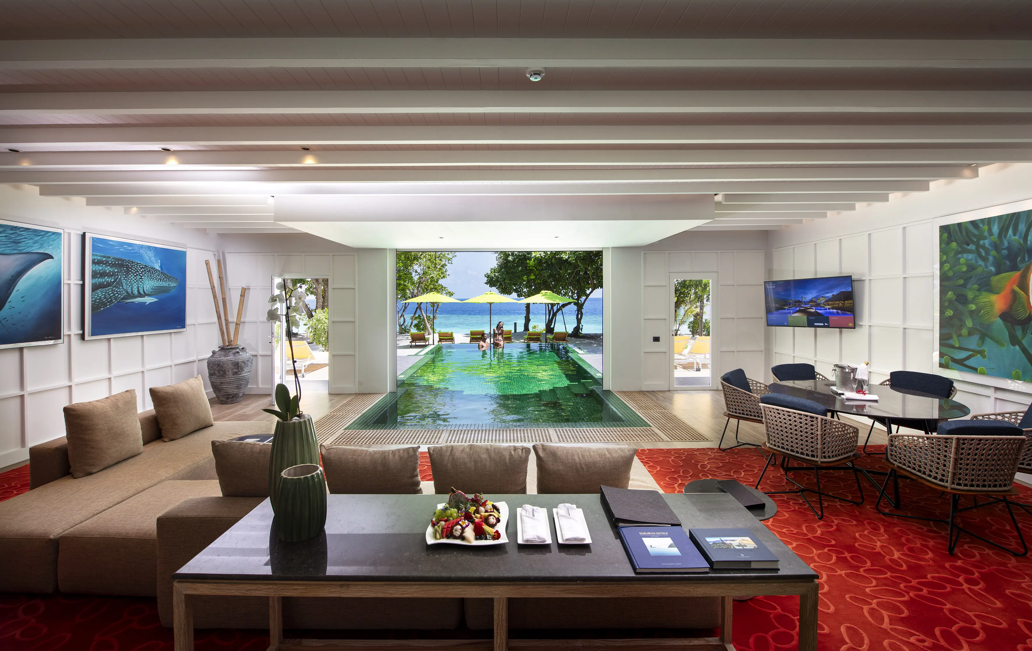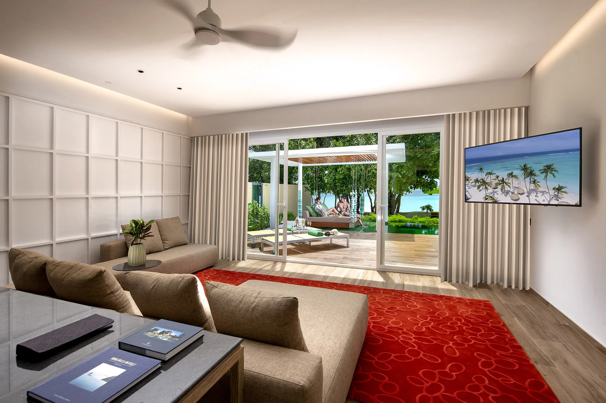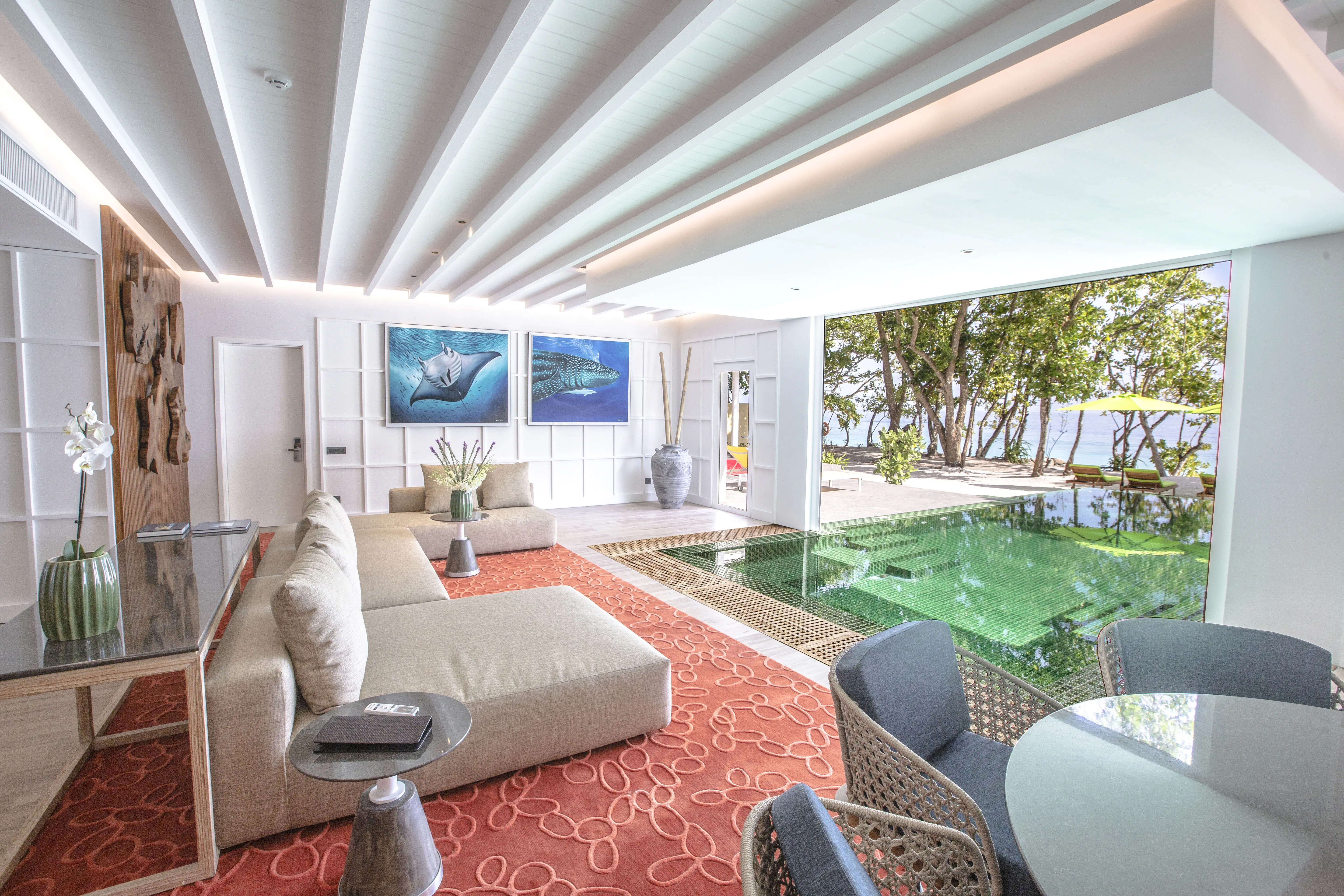 Dla max. 4 osób, Przestrzeń zewnętrzna: Taras, Kanały telewizji: Angielski, Telefon w pokoju, Aneks kuchenny, wanna, prysznic, jacuzzi, Powierzchnia pokoju: ok. 280 m2, Dostawka: sofa, Rodzaj podłogi: drewno, Sprzątanie codziennie, Salon, część jadalniana, miejsce do pracy, 1 sypialnia, Drzwi łączące między pokojami, Maksymalna liczba osób dorosłych: 2, Maksymalna liczba dzieci: 2, Concierge (bezpłatnie), Kwiaty i owoce, Prysznic na świeżym powietrzu, Frontalny widok na plażę,Widok na morze, Bezpośredni dostęp do plaży, Prywatny basen, Liczba łazienek: 1, Liczba toalet: 1, Zestaw do parzenia kawy i herbaty, Klimatyzacja: Klimatyzacja indywidualna