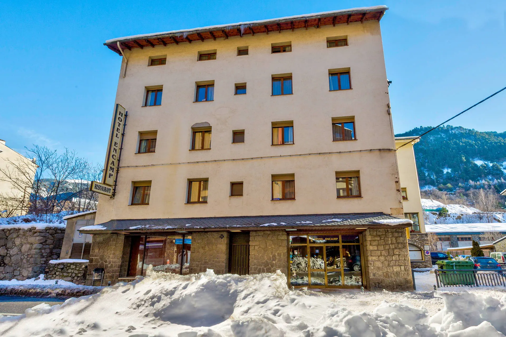 Wyżywienie Rodzaje wyżywienia i posiłki: Śniadania: 07:30 - 13:00.Obiadokolacje: 19:30 - 22:00.Napoje do obiadokolacji płatne dodatkowo. Posiłki serwowane są w formie bufetu. Do dyspozycji gości Recepcja 24h, lobby, winda. Atrakcje: pokój gier z bilardem, piłkarzykami i automatami do gier (płatne), biblioteka, sala TV. Restauracje: restauracja bufetowa, bar-kawiarnia z tarasem zewnętrznym (czynna w godzinach 08:00-24:00; dodatkowo płatna). Pozostałe informacje: przechowalnia nart/szafki (wymagany depozyt - ok. 10 EUR/szafka/pobyt), pralnia płatna 10 EUR. UWAGA! obowiązkowa taksa turystyczna płatna bezpośrednio w recepcji hotelu ok. 1,5-2,5 EUR/os/dzień. Internet Bezpłatne Wi-Fi w całym hotelu. Kategoria lokalna *** Naszym zdaniem Hotel Encamp to doskonałe miejsce na zimowy wypoczynek, oferujące wysoką jakość usług w przystępnej cenie. Przyjazna atmosfera zapewnia komfortowy pobyt. Mimo braku atrakcji w okolicy, hotel wyróżnia się jakością obsługi, co czyni go idealnym wyborem dla osób poszukujących relaksu i spokoju. Goście mogą cieszyć się udanym wypoczynkiem w przytulnym otoczeniu. Pokoje Hotel oferuje 60 skromnych ale wygodnie urządzonych pokoi 2 i 3 os.z łazienkami (WC, prysznic lub wanna), TV-sat, telefonem i sejfem. Istnieje mozliwość bezpłatnego wypożyczenia suszarki do włosów w recepcji. Pokoje dla 4 osób są dostępne na zapytanie. Położenie Transfer z lotniska w Barcelonie trwa około 3,5 godziny, a odległość wynosi 230 km. Niewielki, skromny hotel, położony jest w centrum Encamp (na przeciwko hotelu Montecarlo), czwartej co do wielkości miejscowości Andory na wysokości 1300 m n.p.m.Do stacji narciarskiej w Grandvalira (ok. 1900 m) dowozi gości bezpłatny skibus - funibus (kursuje od 08:30 do 18:00; przystanek przed hotelem). Autobus do stolicy Andory kosztuje około 2 EUR w jedną stronę, a transport trwa około 10 minut. Obiekt znajduje się w centrum Encamp, naprzeciwko hotelu Montecarlo, w pobliżu barów, restauracji i sklepików. Strona www www.hotelencamp.com