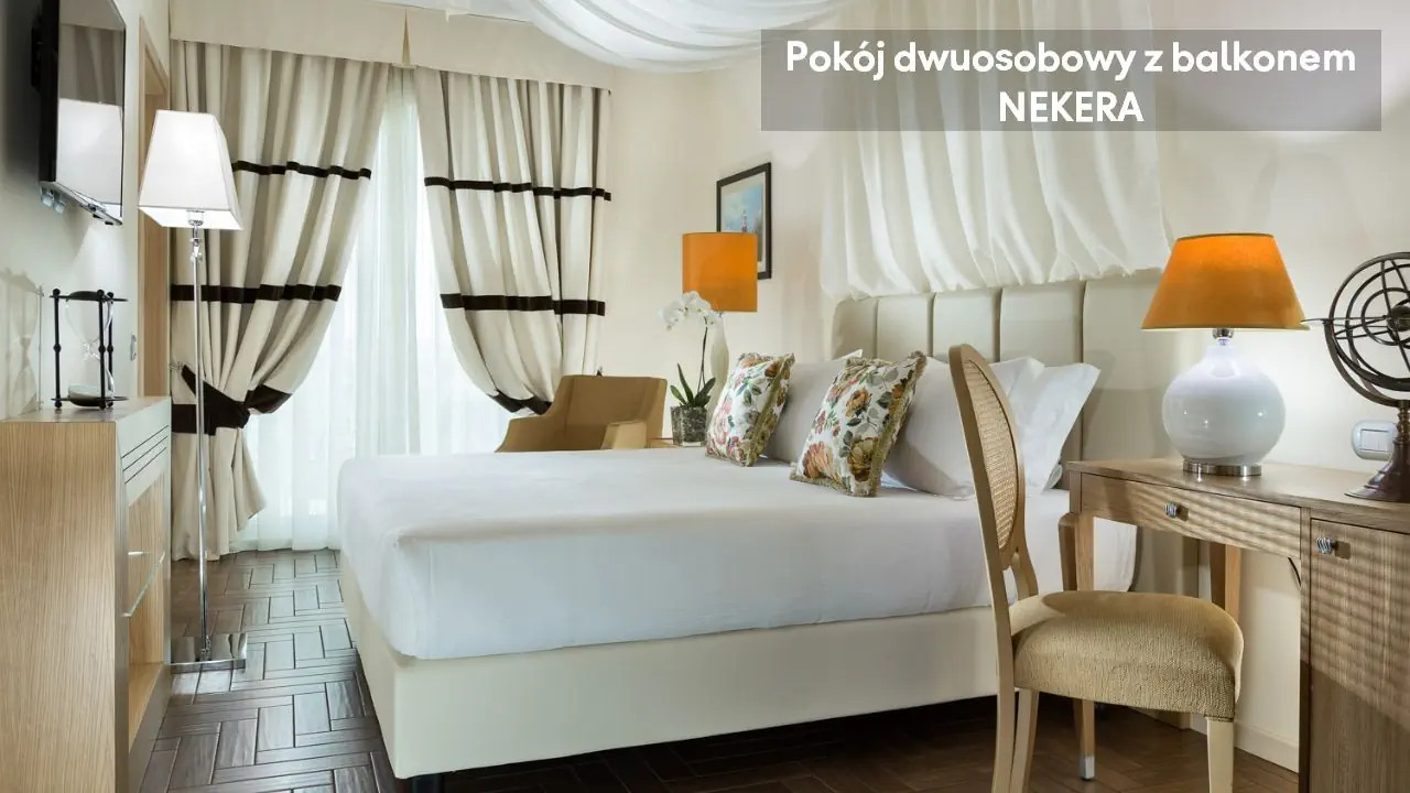 Pokój dwuosobowy z balkonem: ok. 19 m2, mogący zakwaterować do dwóch osób, jedno łóżko podwójne lub dwa łóżka pojedyncze, TV, Wi-Fi, klimatyzacja, sejf, biurko, minibar, prywatna łazienka (wanna lub prysznic, toaleta, umywalka, suszarka do włosów, zestaw kosmetyków, ręczniki), balkon. Pokój dwuosobowy Superior: ok. 24 m2, jedno łóżko podwójne, pokój większy, z balkonem, urządzony w naturalnych kolorach; poza tym wyposażony jak pokój dwuosobowy z balkonem. Pokój jednoosobowy: ok. 14 m2, jedno łóżko pojedyncze; pokój z balkonem; poza tym wyposażony jak pokój dwuosobowy z balkonem.