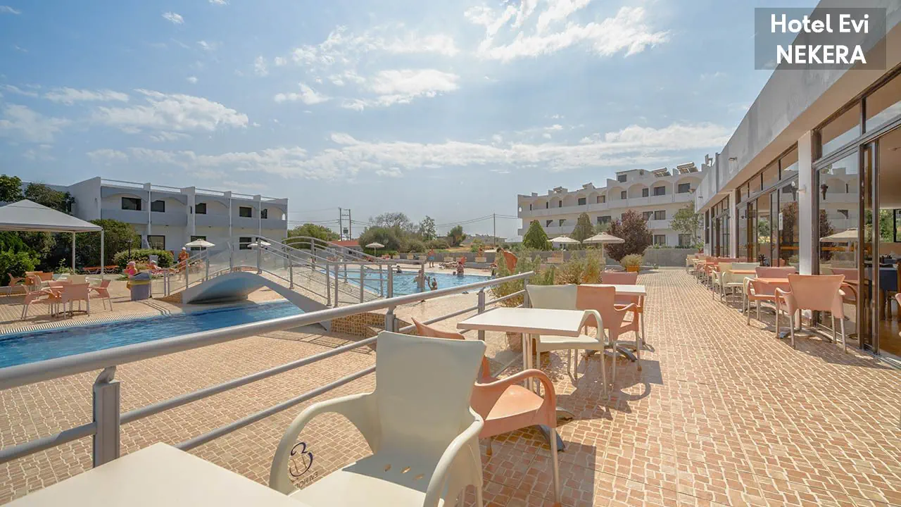 w turystycznej miejscowości Faliraki. Jest to idealne miejsce stanowiące doskonałą bazę wypadową do zwiedzania wyspy. Przystanek autobusowy znajduje się 500 m od hotelu, ok 4 km od największego Waterparku na wyspie, ok 13 km od miasta Rodos, ok. 35 km od Lindos. Port lotniczy zlokalizowany jest ok 15 km.