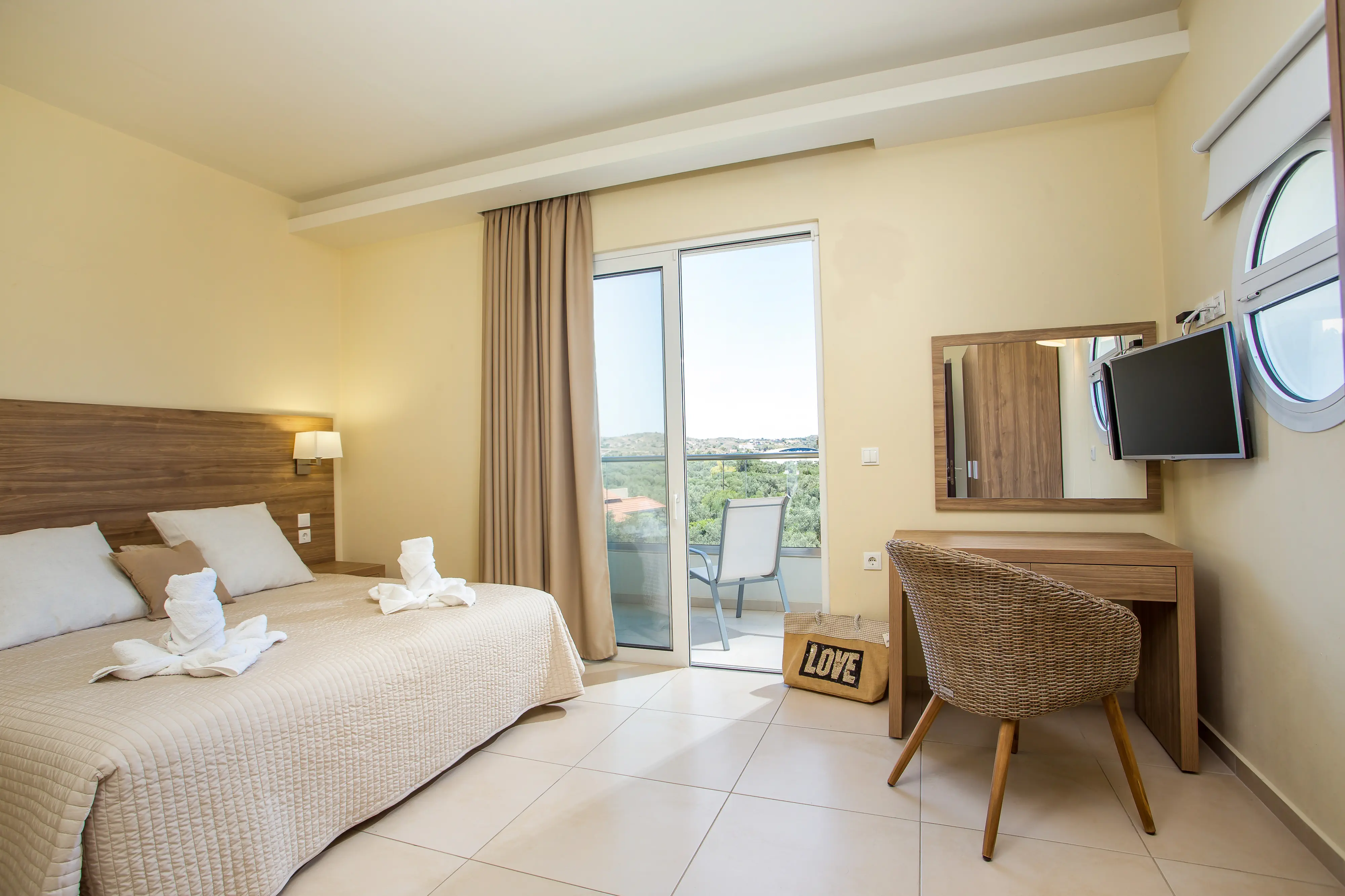 Dla max. 3 osób, Przestrzeń zewnętrzna: Balkon lub taras, Kanały telewizji: Angielski, prysznic, Powierzchnia pokoju: ok. 22 m2, Rodzaj podłogi: płytki, Sprzątanie raz na tydzień, 1 sypialnia, Maksymalna liczba osób dorosłych: 3, Maksymalna liczba dzieci: 2, Widok na ogród,Widok na basen, Liczba łazienek: 1, Liczba toalet: 1, Klimatyzacja: Klimatyzacja indywidualna