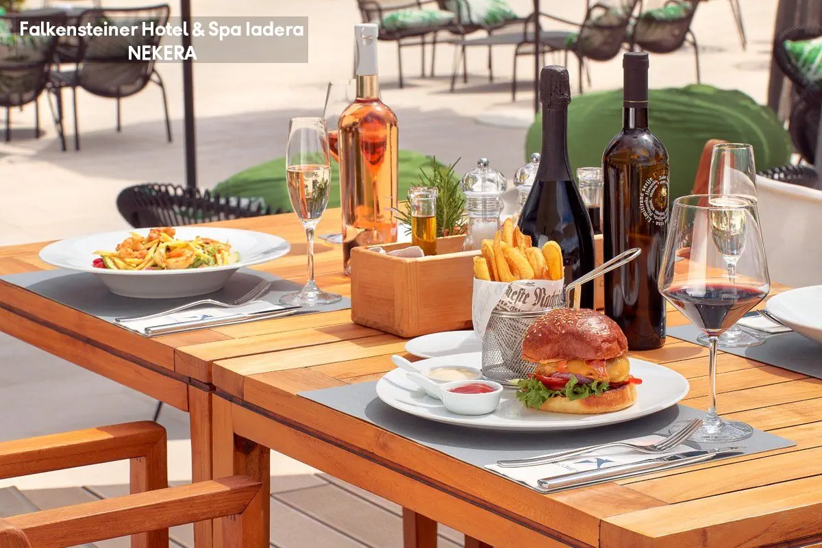 ze śniadaniem lub z dwoma posiłkami: śniadanie w formie bufetu, kolacja w formie serwowanego menu z bufetem sałatkowym, przystawkowym i deserowym. W szczycie sezonu (lipiec-sierpień) kolacje tematyczne. Śniadanie i kolacje serwowane są w restauracji głównej. Pozostałe restauracje za opłatą.