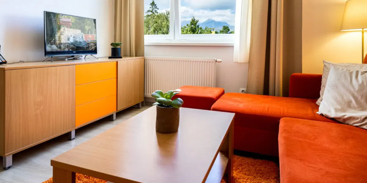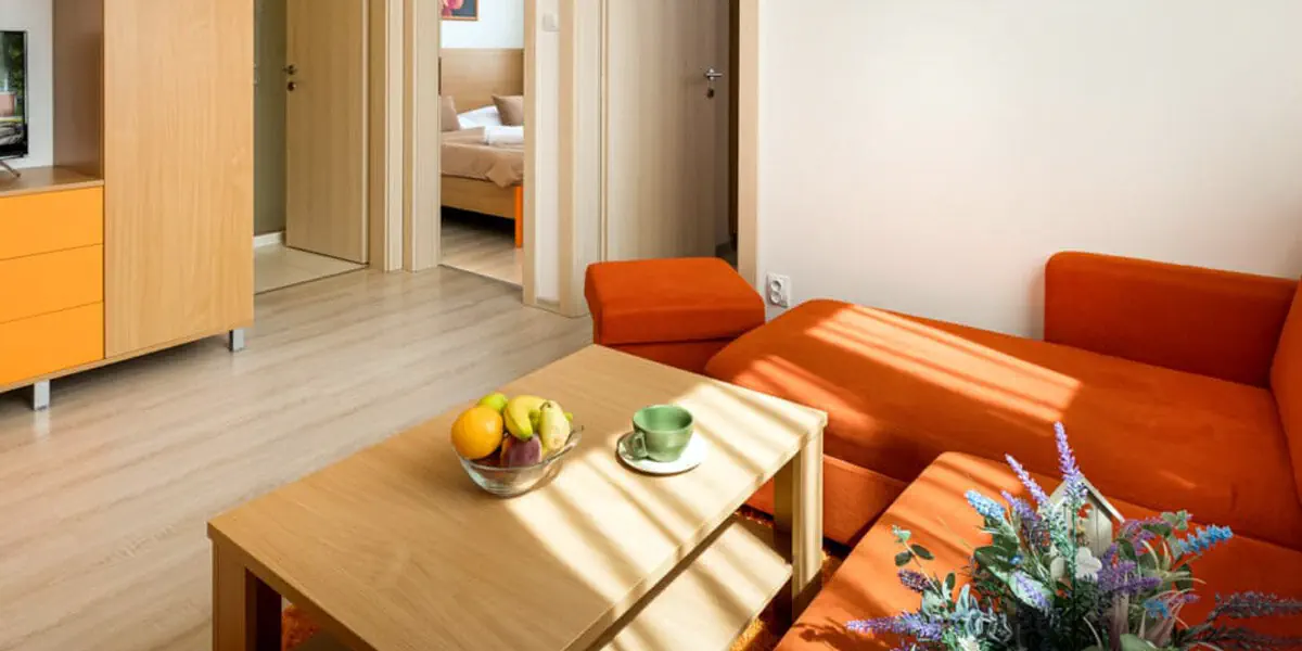Gustownie zaprojektowany i przestronny, dwupokojowy apartament z rozkładaną sofą, idealny dla rodzin z dziećmi. Apartament z widokiem na park leśny.