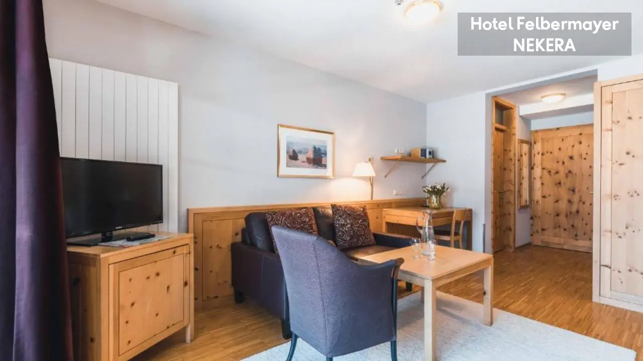 pokoje dwuosobowe "Loewenzahn" (ok. 20 m2): wanna lub prysznic, WC, suszarka, telefon, TV, WiFi, sejf. Pokoje dwuosobowe "Arnica" (ok. 20 m2): wyposażone jak pokoje dwuosobowe "Loewenzahn". Junios Suite "Schneerose" (ok. 40 m2): wyposażone jak pokoje dwuosobowe "Loewenzahn", balkon. Junios Suite (ok. 35 m2): wyposażone jak pokoje dwuosobowe "Loewenzahn", balkon. Pokoje jednoosobowe (ok. 16 m2): wyposażone jak pokoje dwuosobowe "Loewenzahn". Junor Suite "Vierbettzimmer Schneerose" (ok. 35 m2): wyposażone jak pokoje dwuosobowe "Loewenzahn", balkon.
