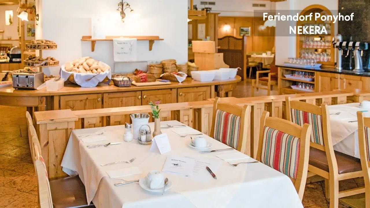 z dwoma posiłkami. Śniadanie w formie bufetu (7.30 – 10.00), kolacja wybór z 5-daniowego menu lub bufet tematyczny. Raz w tygodniu kolacja fondue (za dodatkową opłatą). W godzinach 18-20:00 bezpłatnie woda i soki dla dzieci w hotelowym barze.