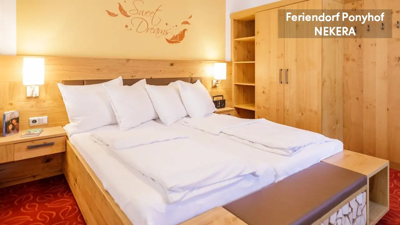 Pokój dwuosobowy w budynku "Elternhaus": ok. 25 m2, mogący zakwaterować do czterech osób; jedno łóżko podwójne i dodatkowe łóżka pojedyncze lub sofa; TV, łazienka (prysznic, toaleta, umywalka), balkon. Pokój rodzinny Hedi w budynku "Elternhaus": ok 30-35 m2, mogący zakwaterować do czterech osób; jedno łóżko podwójne i dwa łóżka pojedyncze w optycznie wydzielonej części pokoju; poza tym wyposażony jak pokój dwuosobowy. Łóżeczko dla dziecka do 2 lat gratis.