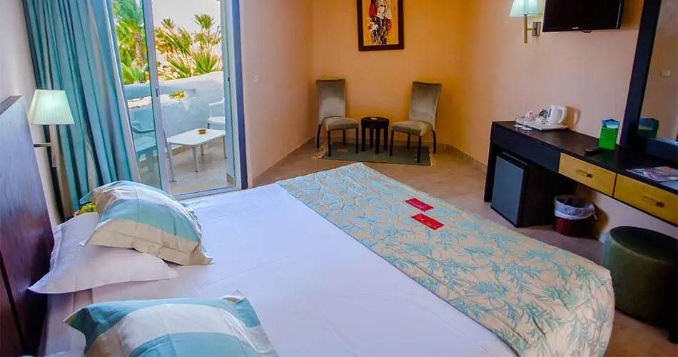 Recepcja Restauracja główna 2 restauracje a'la carte (czynne od 01.04- 31.10) Kilka barów Kawiarnia mauretańska (shisha płatna) Rozległy basen główny Basen relaksacyjny Basen ze zjeżdżalniami (od 01.04- 31.10) Basen z wodą termalną Basen kryty Dyskoteka Centrum Spa (wszystkie zabiegi płatne) Sklep Oficjalna kategoria 4*
