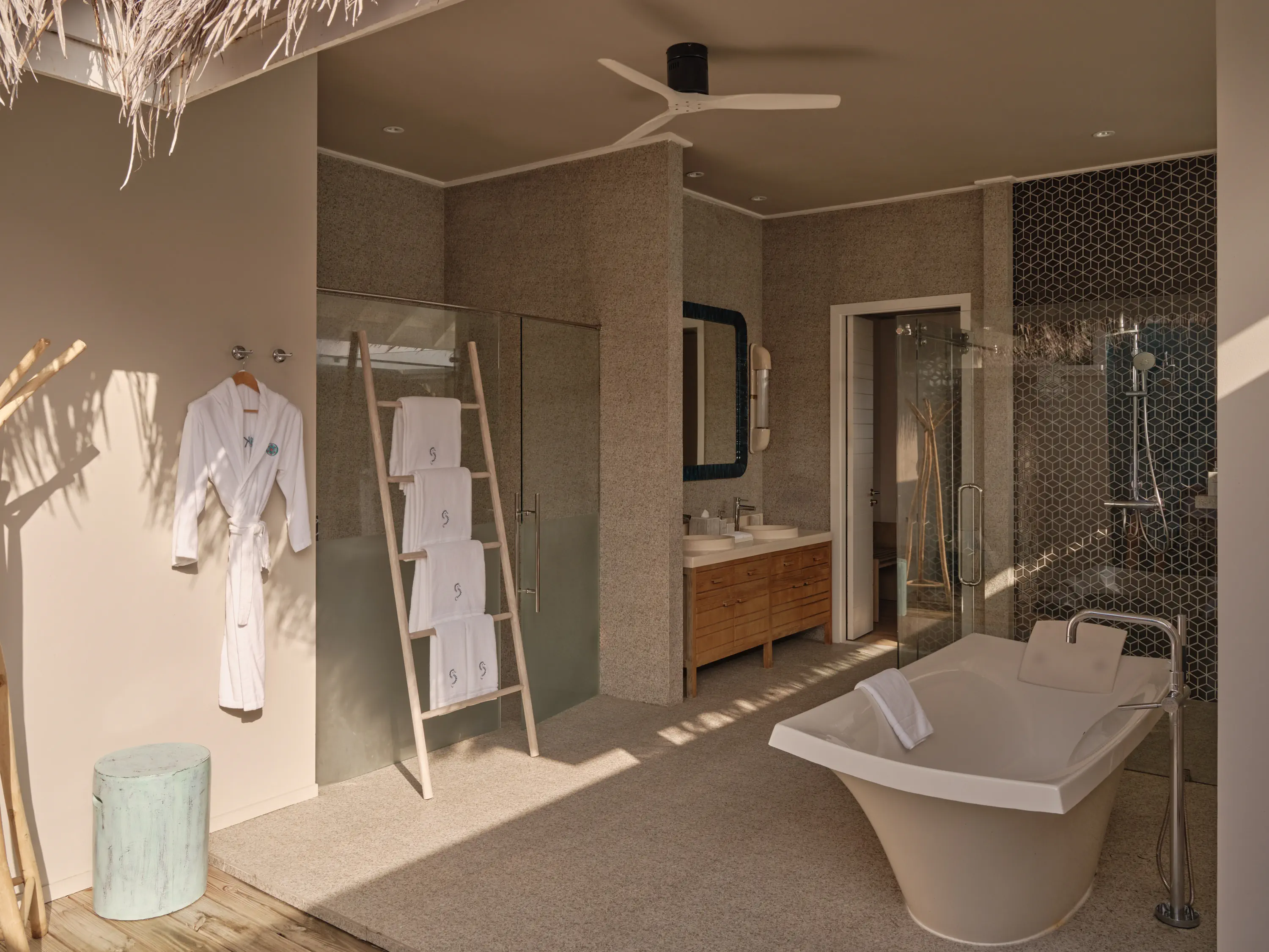 Dla max. 4 osób, Przestrzeń zewnętrzna: Taras, Kanały telewizji: Angielski, Telefon w pokoju, wanna i prysznic , Powierzchnia pokoju: ok. 205 m2, Dostawka: łóżko standardowe, Rodzaj podłogi: laminat, Sprzątanie codziennie, 1 sypialnia, Maksymalna liczba osób dorosłych: 3, Maksymalna liczba dzieci: 2, Concierge (bezpłatnie), Frontalny widok na plażę, Bezpośredni dostęp do plaży, Prywatny basen, Liczba łazienek: 1, Liczba toalet: 1, Zestaw do parzenia kawy i herbaty, Klimatyzacja: Klimatyzacja indywidualna