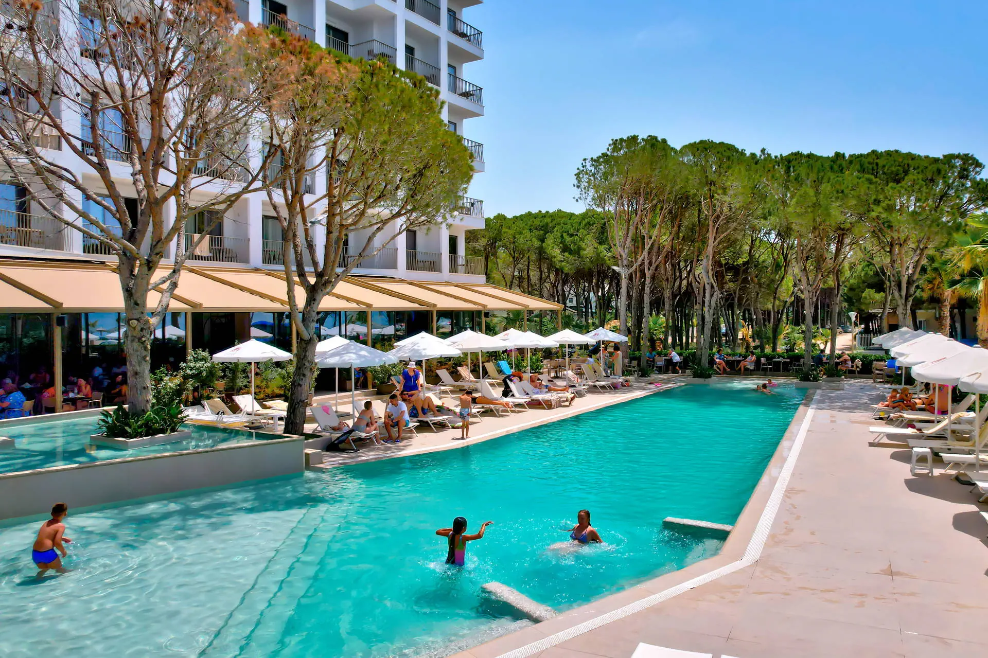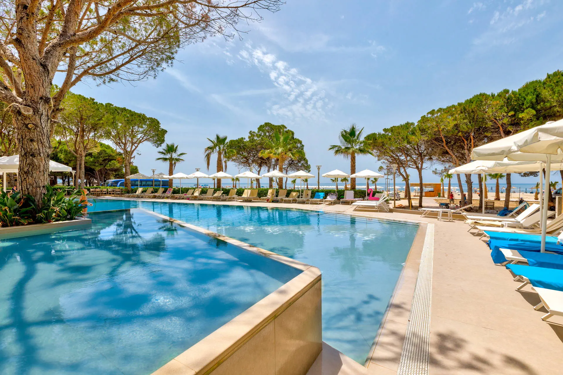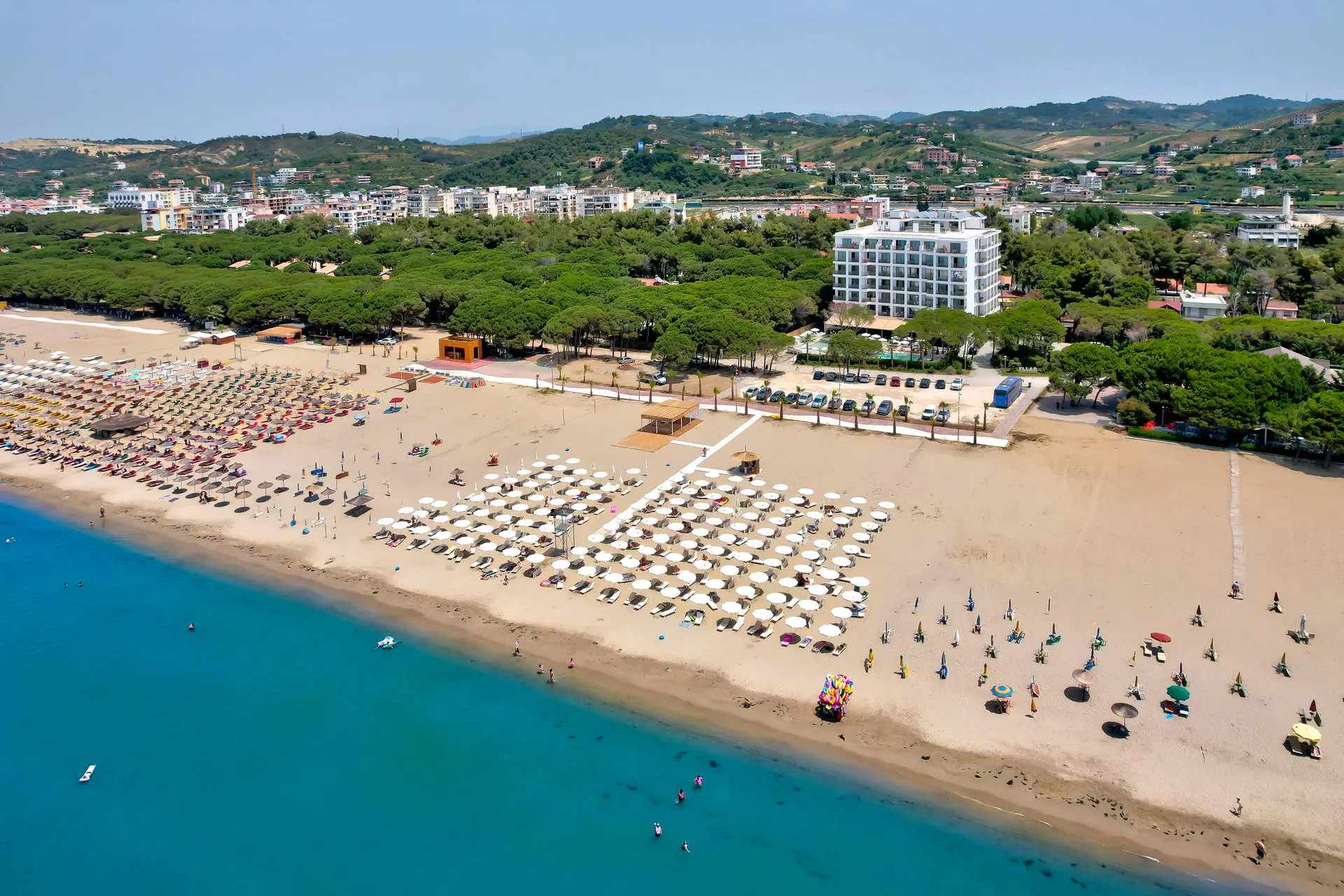 Położenie Hotel położony jest w turystycznej dzielnicy Golem na południe od centrum Durres. Hotel znajduje się w odległości ok. 40 km od lotniska Przystanek autobusowy znajduje się w odległości około 1 km od obiektu. Transport publiczny do centrum Durres kosztuje około 2 EUR, a taksówka około 30 EUR. Obiekt znajduje się bezpośrednio przy długiej, piaszczystej, zagospodarowanej plaży. Plaża Plaża tuż przy hotelu. Złocista, piaszczysta, licząca ponad 10 km. Hotelowe leżaki i ręczniki dostępne bezpłatnie. Do dyspozycji gości Całodobowa recepcja, lobby, windy. 1 basen dostępny dla Gości hotelu. Atrakcje dla dorosłych: siłownia, sauna. Restauracje: restauracja główna, bar w lobby (płatne), restauracja à la carte (płatne), bar przy basenie. Pozostałe informacje: przechowalnia bagażu, parking. Wyżywienie Rodzaje wyżywienia i posiłki: All Inclusive: Śniadania: 07:30 - 10:00. Lunche: 12:30 - 14:00. Obiadokolacje: 19:00 - 21:00, w formie bufetu (dania kuchni międzynarodowej oraz albańskiej). Przekąski: 16:00 – 17:00. Bary: Bar przy basenie: napoje bezalkoholowe (woda, soki, herbata, kawa filtrowana) oraz lokalne napoje alkoholowe (piwo, wódka, gin, brandy, wino) dostępne od 10:00 do 22:00. Bar na plaży: napoje bezalkoholowe i lokalne napoje alkoholowe dostępne w godzinach 10:00 - 19:00. Pozostałe informacje: W sezonie hotel organizuje wieczory tematyczne z kuchniami z całego świata. Program sportowy i animacyjny Dla każdego: siłownia, basen wewnętrzny. Dla dzieci: niewielki plac zabaw dla dzieci. Za dodatkową opłatą: SPA z wyborem zabiegów i masaży. Internet WI-FI na terenie hotelu bez dodatkowej opłaty. Kategoria lokalna ***** Naszym zdaniem Nowy, pięciogwiazdkowy hotel, usytuowany przy długiej piaszczystej plaży, zapewnia komfort w atrakcyjnej cenie. Możliwość wykupienia pokoi połączonych wewnętrznymi drzwiami to idealne rozwiązanie dla osób poszukujących elastyczności i wygody. Wysoki standard usług oraz doskonała lokalizacja czynią go świetnym wyborem dla ceniących luksus i bliskość morza.