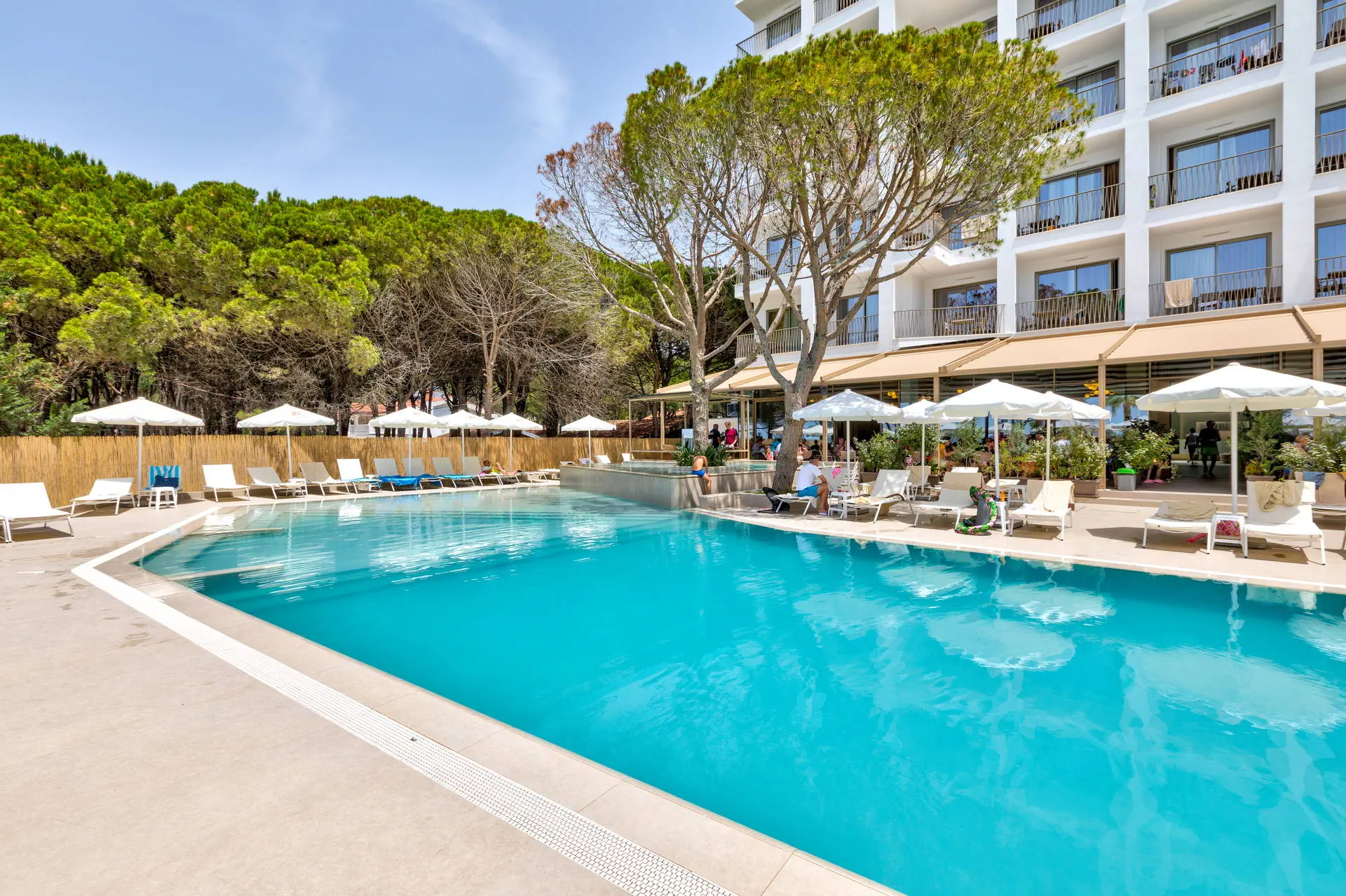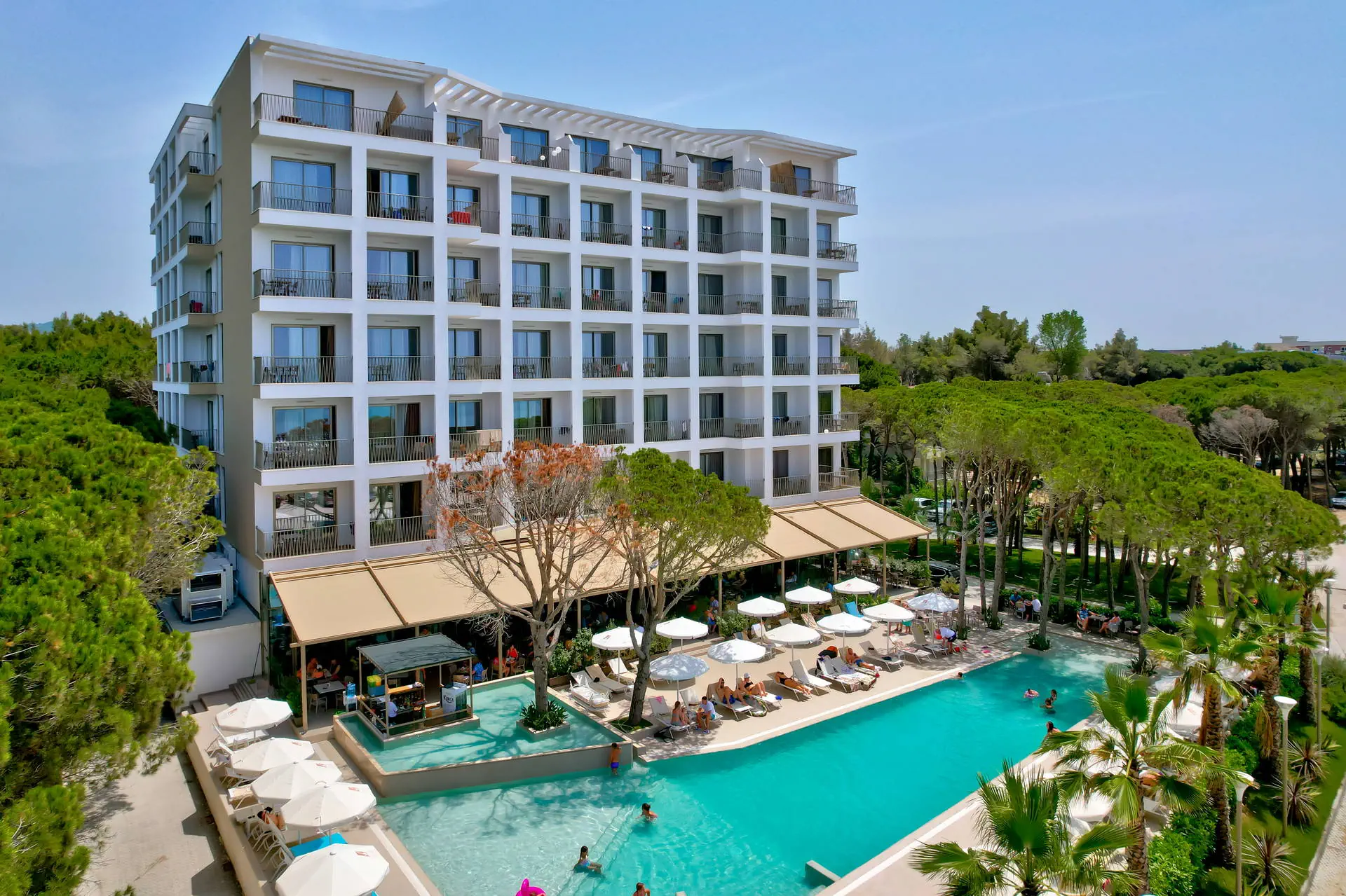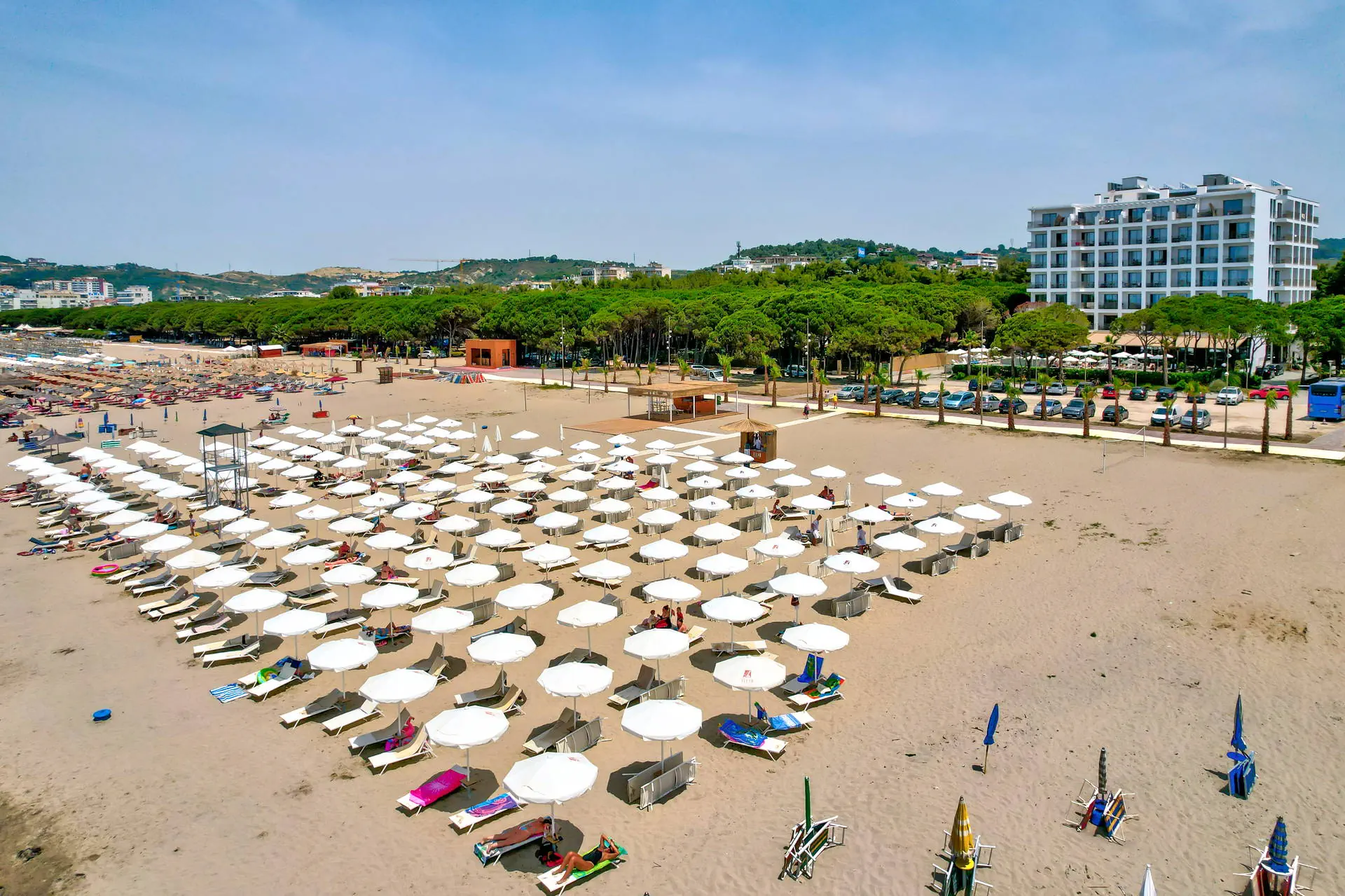 Położenie Hotel położony jest w turystycznej dzielnicy Golem na południe od centrum Durres. Hotel znajduje się w odległości ok. 40 km od lotniska Przystanek autobusowy znajduje się w odległości około 1 km od obiektu. Transport publiczny do centrum Durres kosztuje około 2 EUR, a taksówka około 30 EUR. Obiekt znajduje się bezpośrednio przy długiej, piaszczystej, zagospodarowanej plaży. Plaża Plaża tuż przy hotelu. Złocista, piaszczysta, licząca ponad 10 km. Hotelowe leżaki i ręczniki dostępne bezpłatnie. Do dyspozycji gości Całodobowa recepcja, lobby, windy. 1 basen dostępny dla Gości hotelu. Atrakcje dla dorosłych: siłownia, sauna. Restauracje: restauracja główna, bar w lobby (płatne), restauracja à la carte (płatne), bar przy basenie. Pozostałe informacje: przechowalnia bagażu, parking. Wyżywienie Rodzaje wyżywienia i posiłki: All Inclusive: Śniadania: 07:30 - 10:00. Lunche: 12:30 - 14:00. Obiadokolacje: 19:00 - 21:00, w formie bufetu (dania kuchni międzynarodowej oraz albańskiej). Przekąski: 16:00 – 17:00. Bary: Bar przy basenie: napoje bezalkoholowe (woda, soki, herbata, kawa filtrowana) oraz lokalne napoje alkoholowe (piwo, wódka, gin, brandy, wino) dostępne od 10:00 do 22:00. Bar na plaży: napoje bezalkoholowe i lokalne napoje alkoholowe dostępne w godzinach 10:00 - 19:00. Pozostałe informacje: W sezonie hotel organizuje wieczory tematyczne z kuchniami z całego świata. Program sportowy i animacyjny Dla każdego: siłownia, basen wewnętrzny. Dla dzieci: niewielki plac zabaw dla dzieci. Za dodatkową opłatą: SPA z wyborem zabiegów i masaży. Internet WI-FI na terenie hotelu bez dodatkowej opłaty. Kategoria lokalna ***** Naszym zdaniem Nowy, pięciogwiazdkowy hotel, usytuowany przy długiej piaszczystej plaży, zapewnia komfort w atrakcyjnej cenie. Możliwość wykupienia pokoi połączonych wewnętrznymi drzwiami to idealne rozwiązanie dla osób poszukujących elastyczności i wygody. Wysoki standard usług oraz doskonała lokalizacja czynią go świetnym wyborem dla ceniących luksus i bliskość morza.